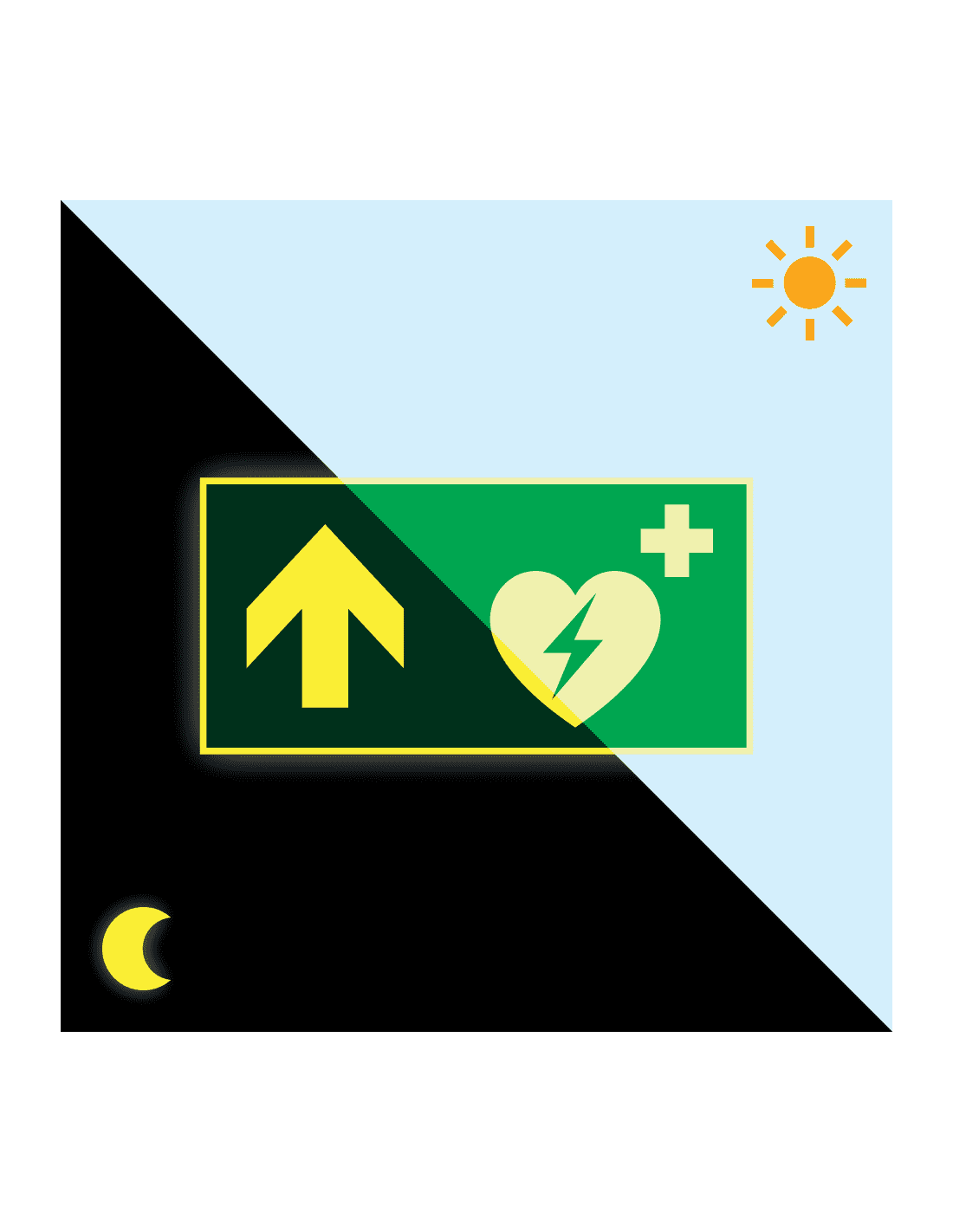 Belangrijkste kenmerken extra lichtgevend AED bord met pijl boven