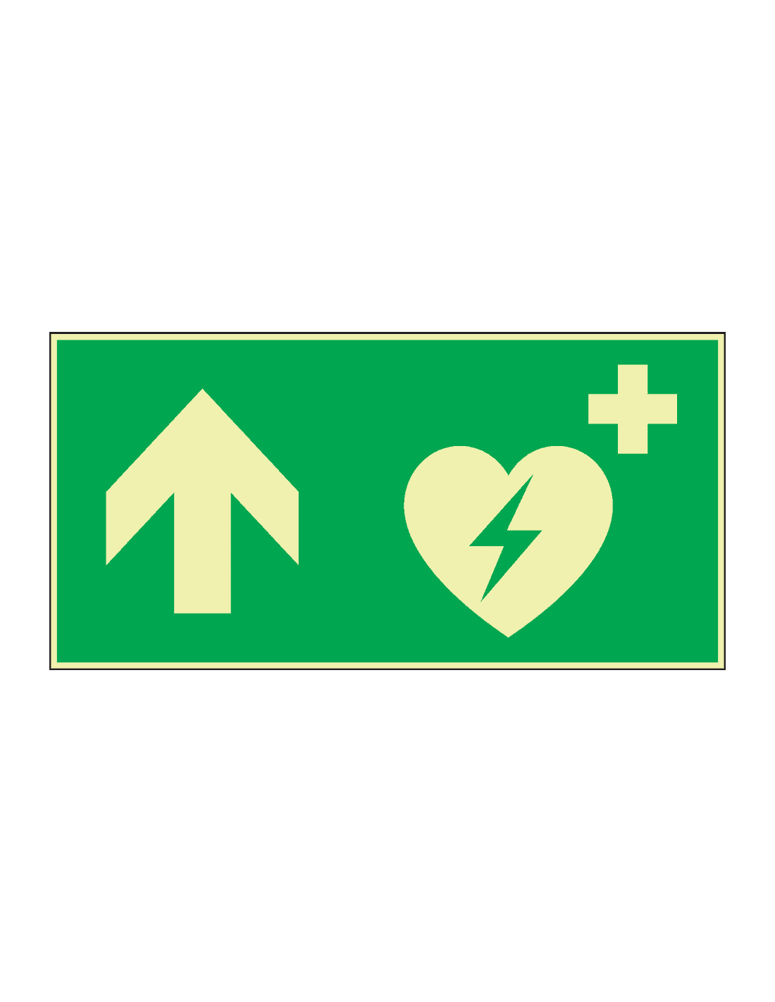 - Lichtgevend bord met pictogram AED en pijl naar boven