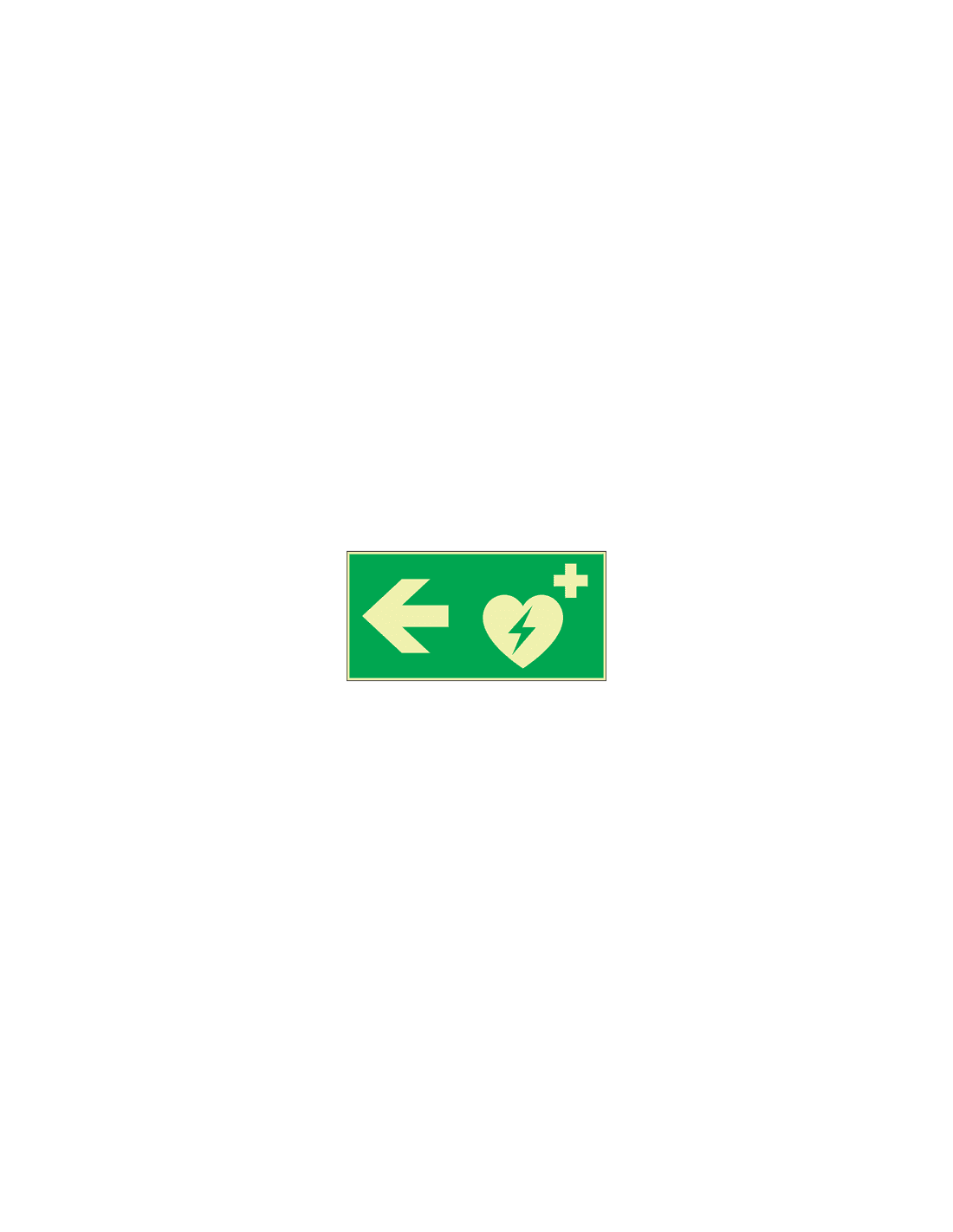 - Lichtgevend bord met pictogram AED en pijl naar links