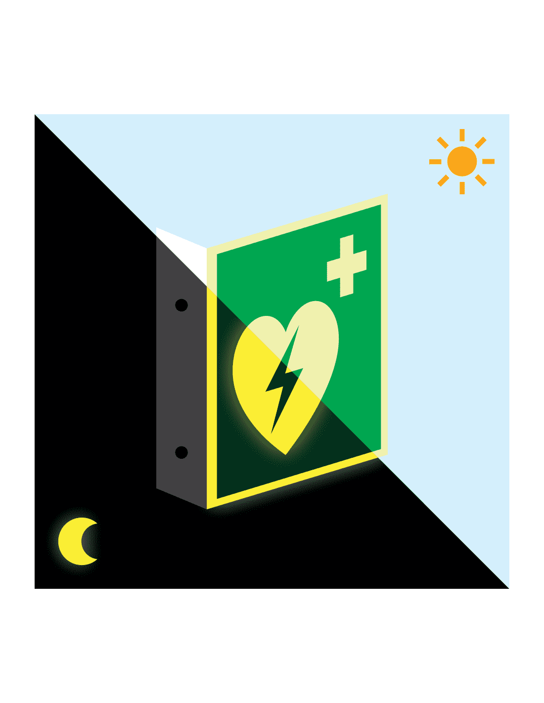 Belangrijkste kenmerken extra lichtgevend haaks AED bord