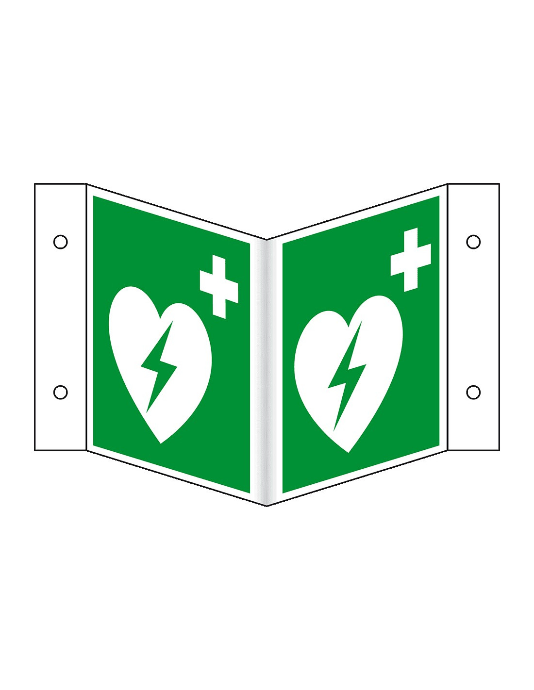 Dit panorama AED bord laat zien dat er op deze plek een AED beschikbaar is in geval van een hartstilstand. Met behulp van dit pictogram kunt u dit duidelijk aangeven.