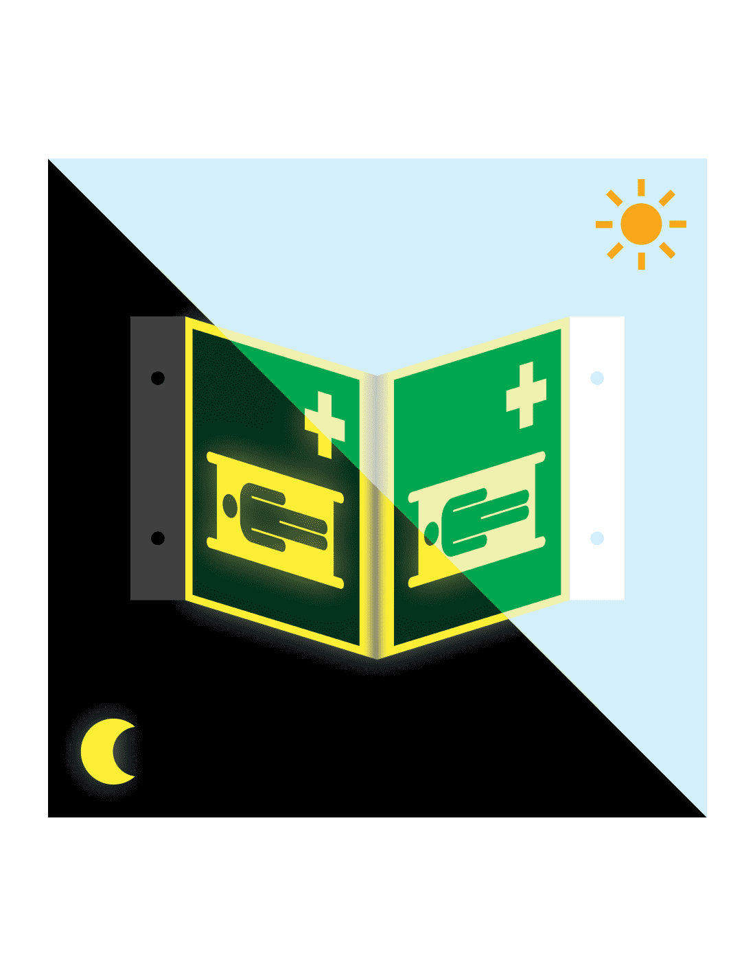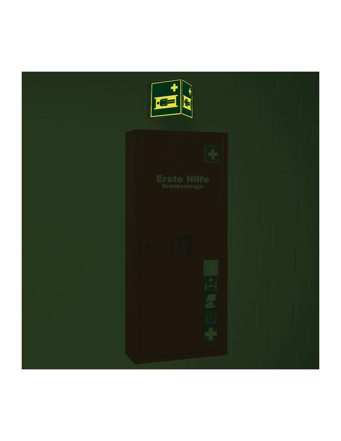 Het extra lichtgevend panorama brancard bord, kunststof, E013 kun je gebruiken om aan te geven dat hier een brancard te vinden is. Op die manier zorg je ervoor dat mensen deze in het geval van een ongeluk snel kunnen vinden.