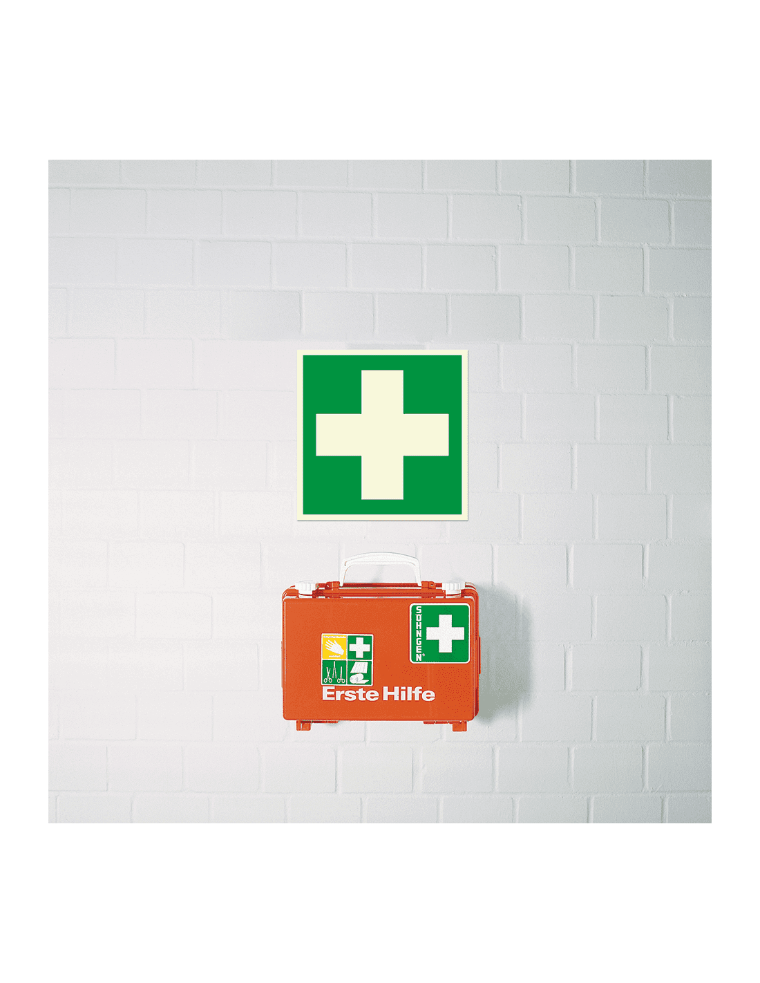 Verder is het symbool EHBO gekeurd volgens de laatste veiligheidsnorm. Dit is de norm DIN EN ISO 7010 E003. Het bord is gemaakt van aluminium, wat hem geschikt maakt voor binnen- en buitengebruik. Bovendien is het bord temperatuurbestendig van -50 tot +130 °C en resistent tegen oplosmiddel en veel chemicaliën. Het bord is licht, stabiel, niet breekbaar en niet brandbaar.