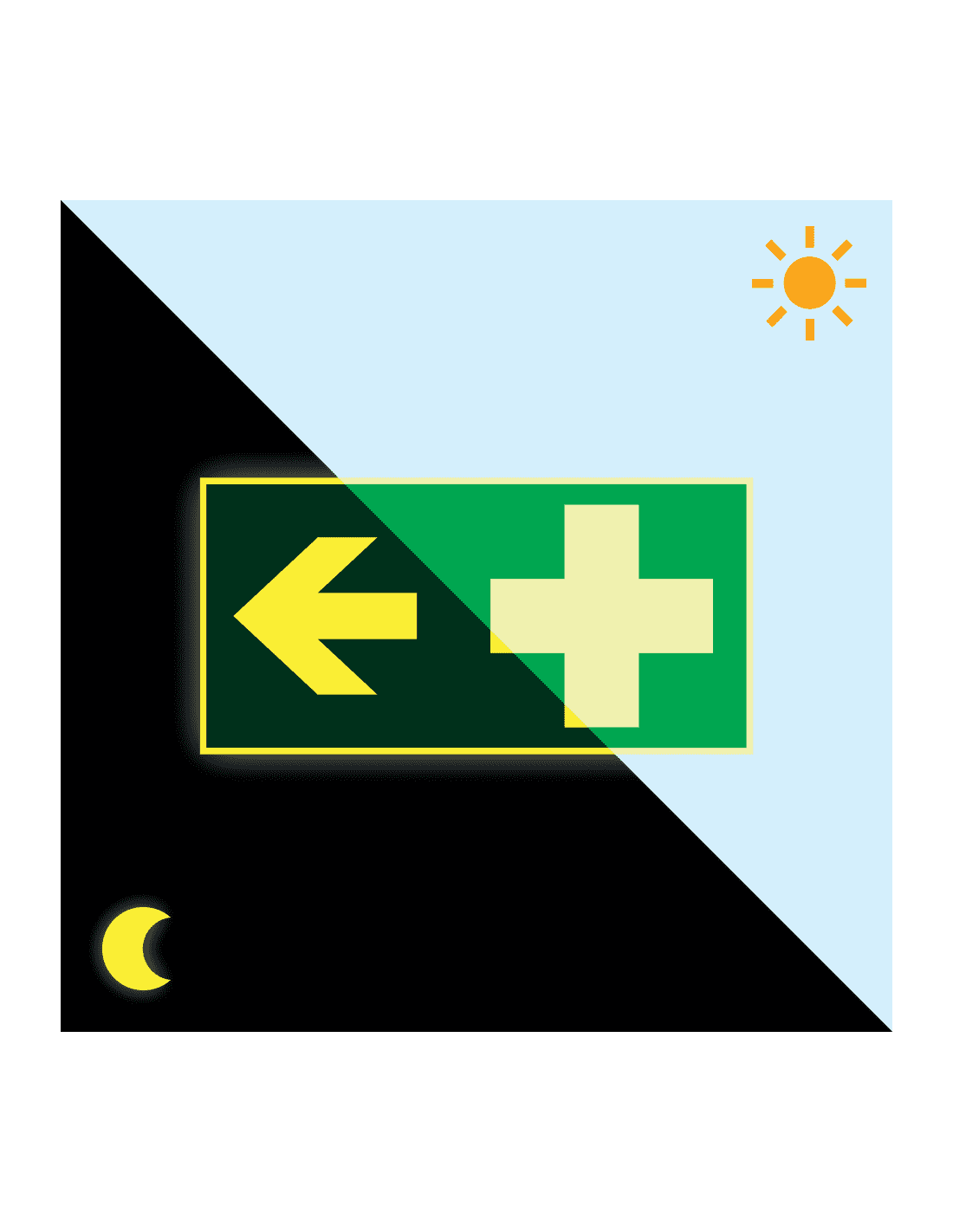 Belangrijkste kenmerken extra lichtgevend EHBO bord met pijl links