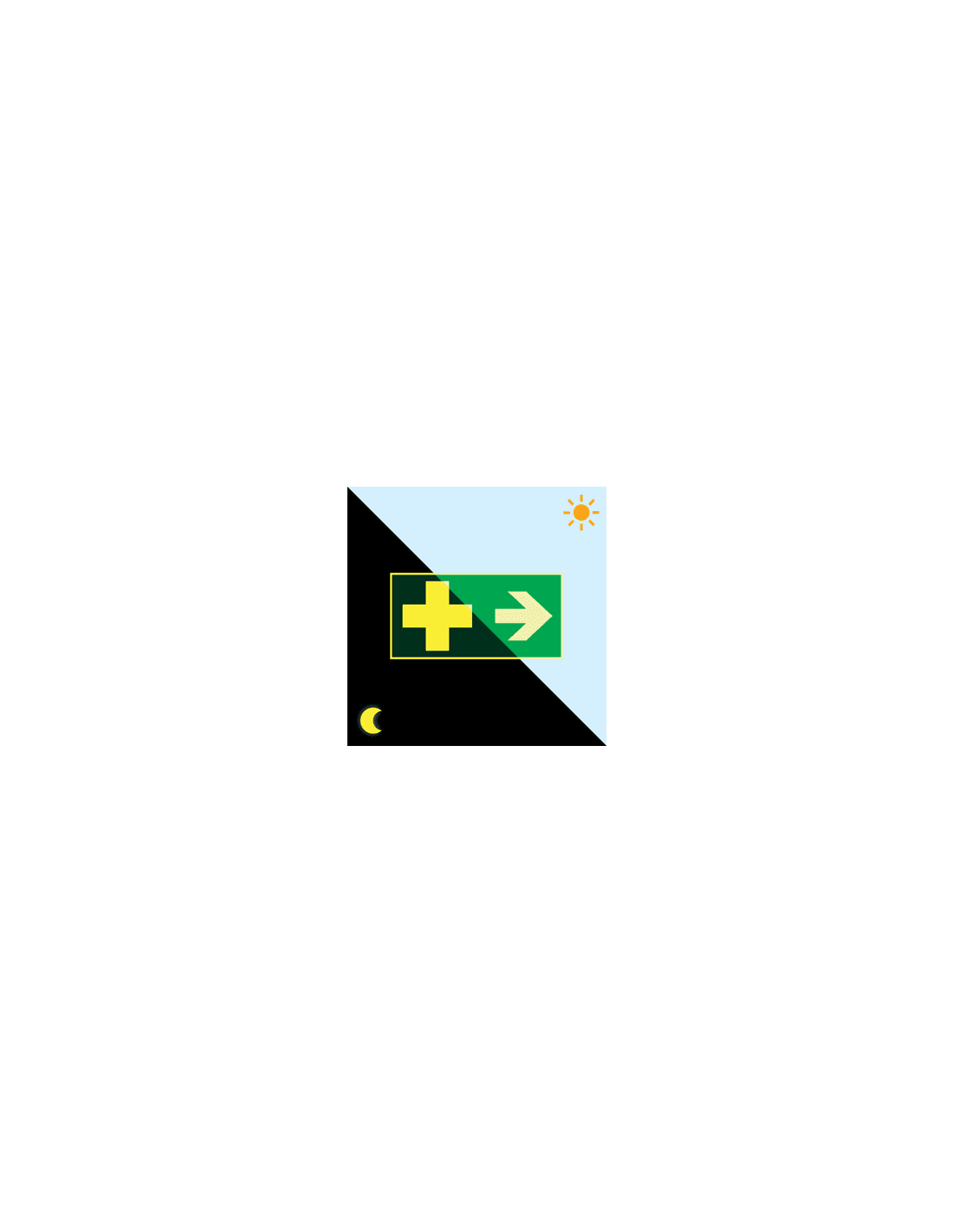 Belangrijkste kenmerken extra lichtgevend EHBO bord met pijl rechts