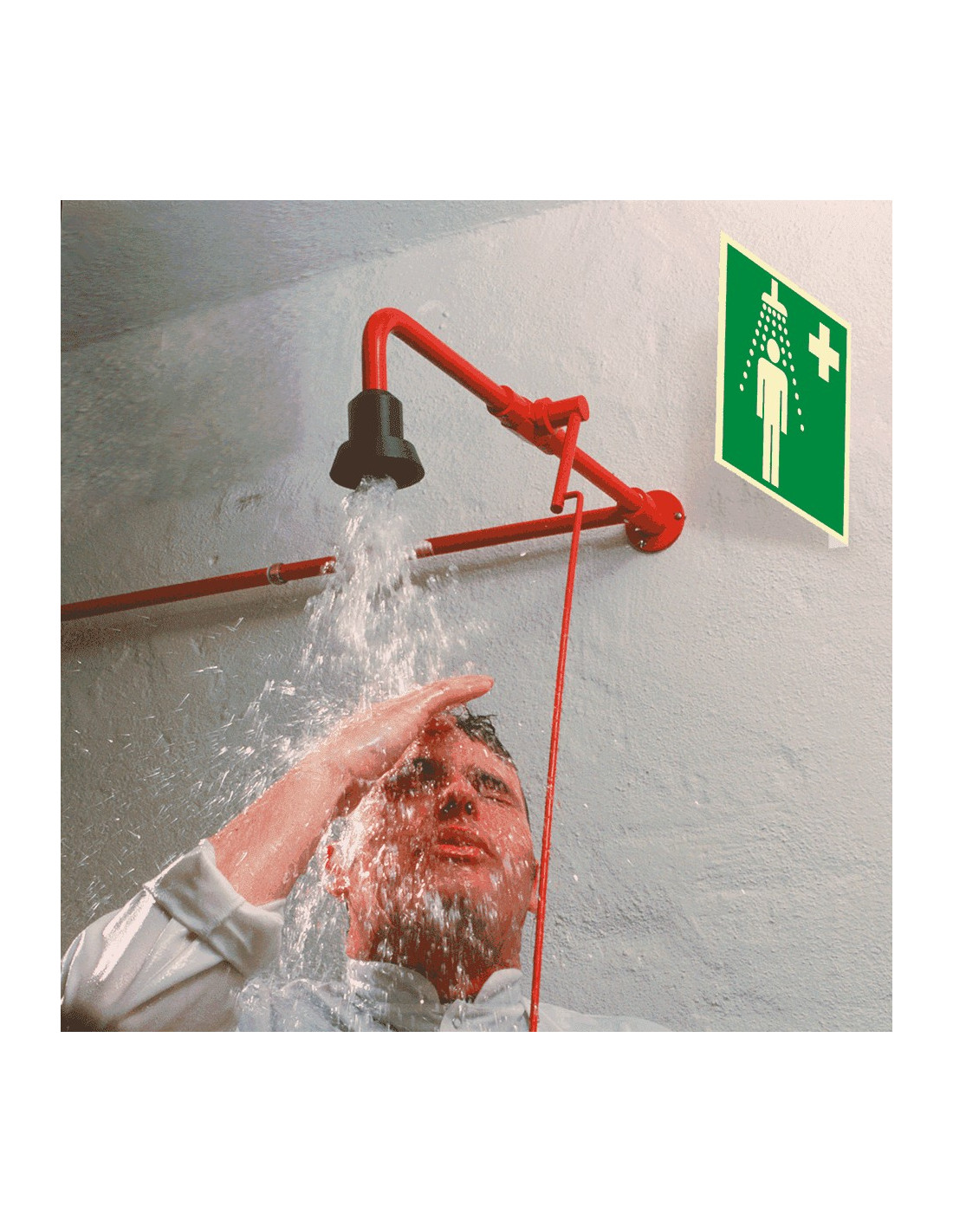- Lichtgevend haaks bord met pictogram nooddouche