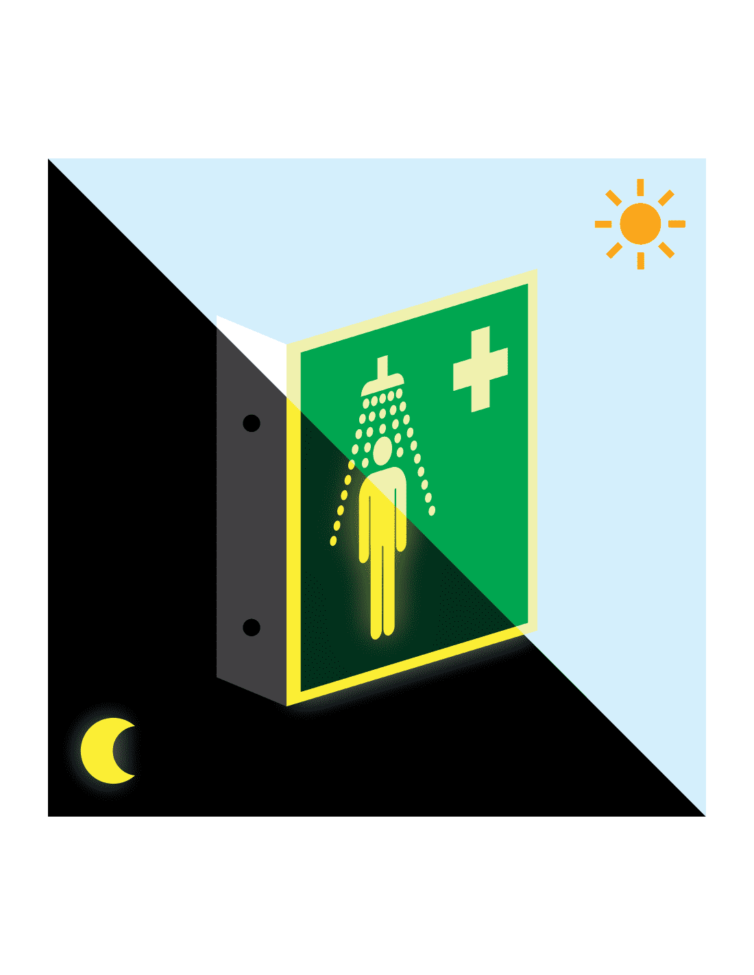 Belangrijkste kenmerken extra lichtgevend haaks nooddouche bord