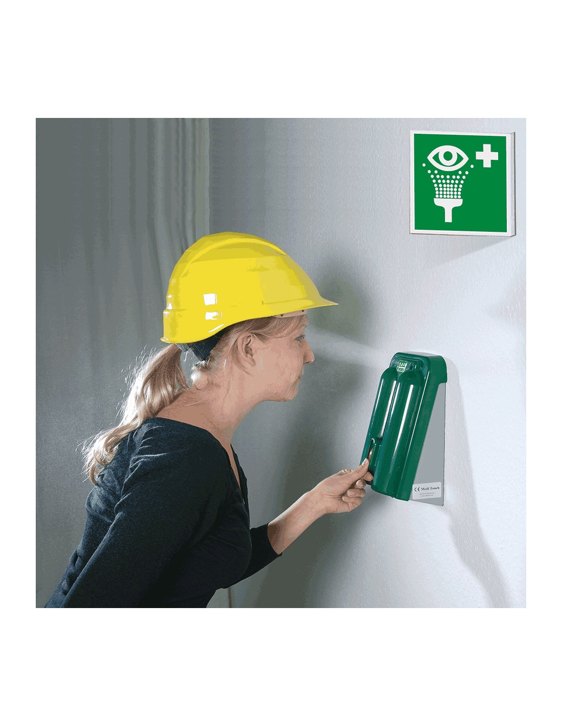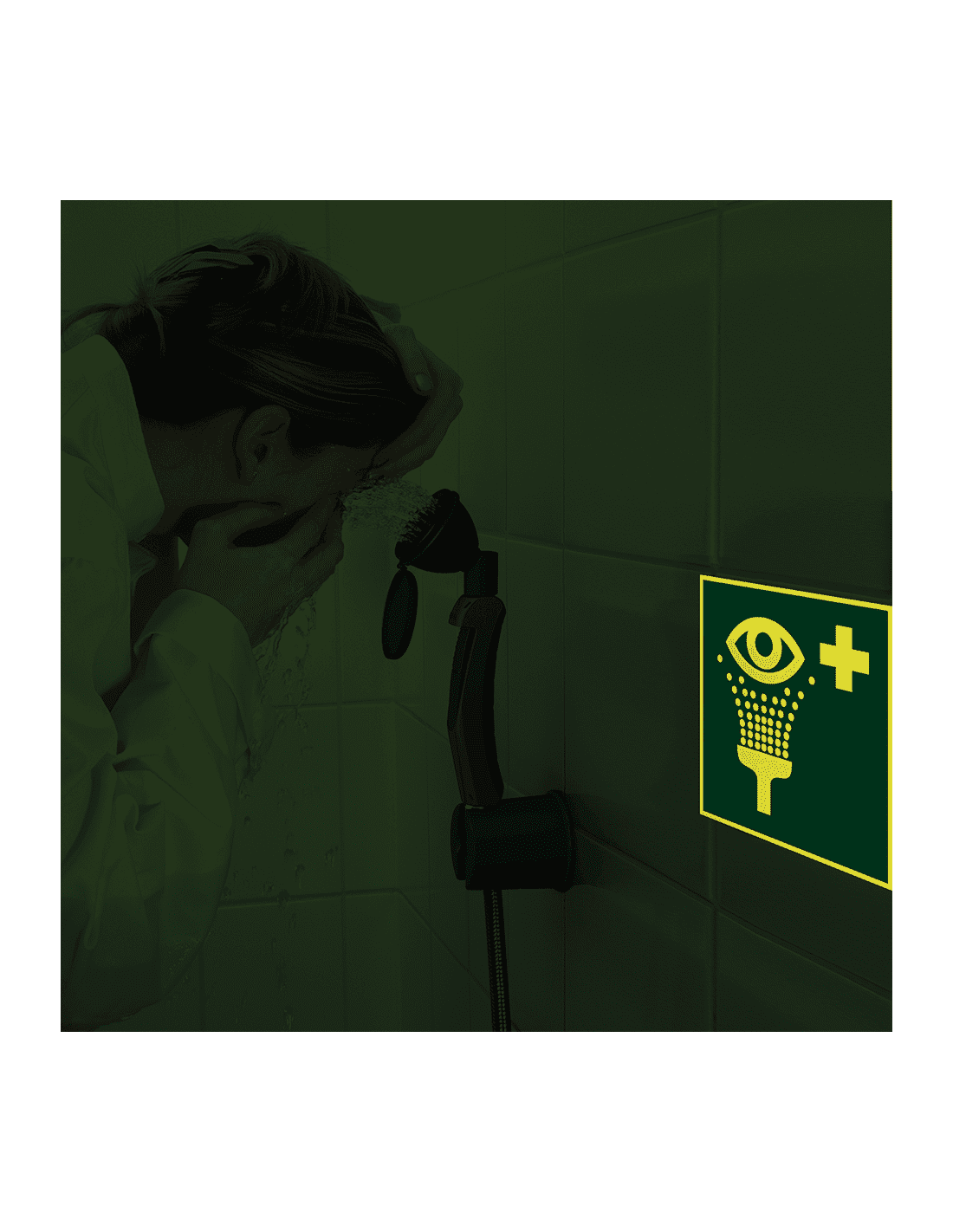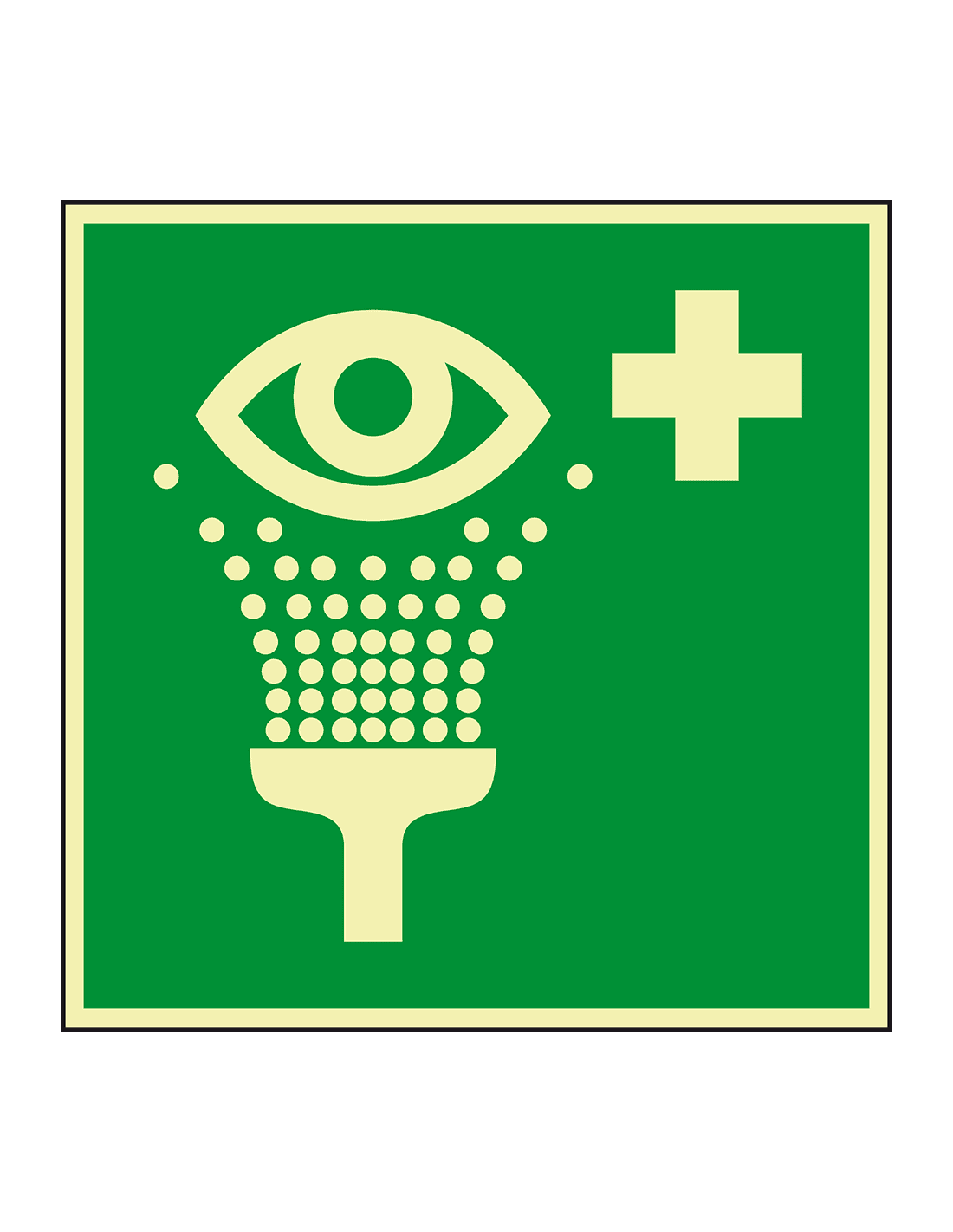 Dit extra lichtgevend oogdouche bord laat zien dat er op deze plek materialen beschikbaar zijn om eerste hulp te verlenen of dat er een oogdouche aanwezig is op deze plek. Op die manier zorgt u ervoor dat mensen deze plek snel kunnen vinden in het geval van een noodsituatie.