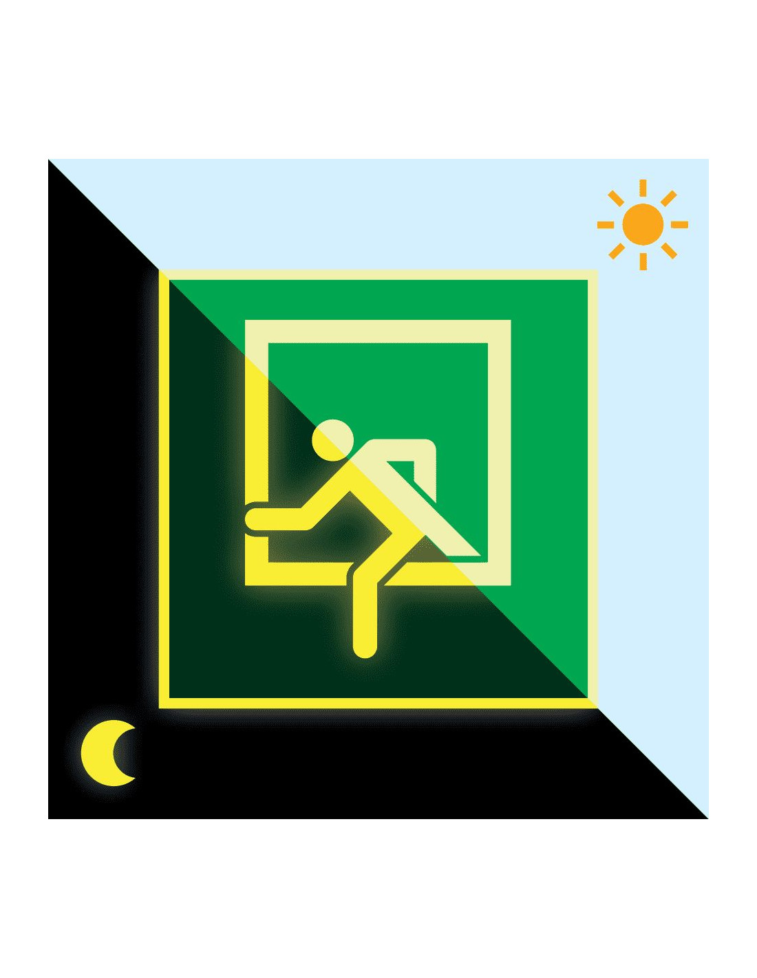Belangrijkste kenmerken extra lichtgevend noodraam bord