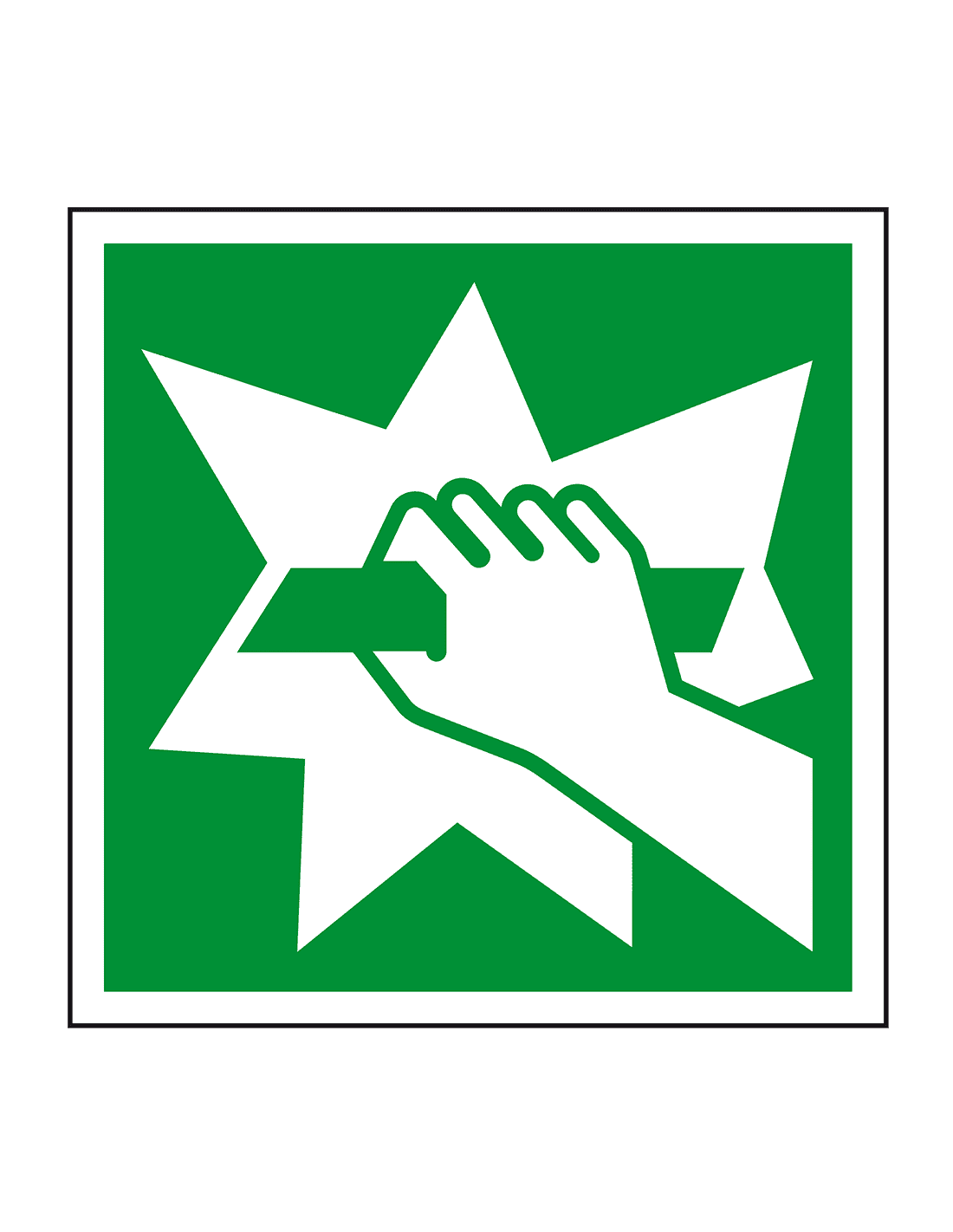 Dit glas breken bord laat zien dat er op deze plek glas is wat in geval van nood gebroken kan worden.