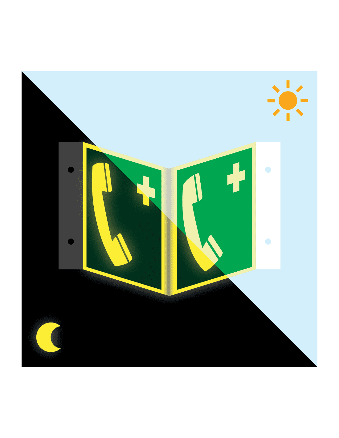 Het Extra lichtgevend panorama noodtelefoon bord, E004 kun je gebruiken om aan te geven dat er op deze plek een noodtelefoon te vinden is. Zo kunnen mensen deze in geval van nood snel vinden.