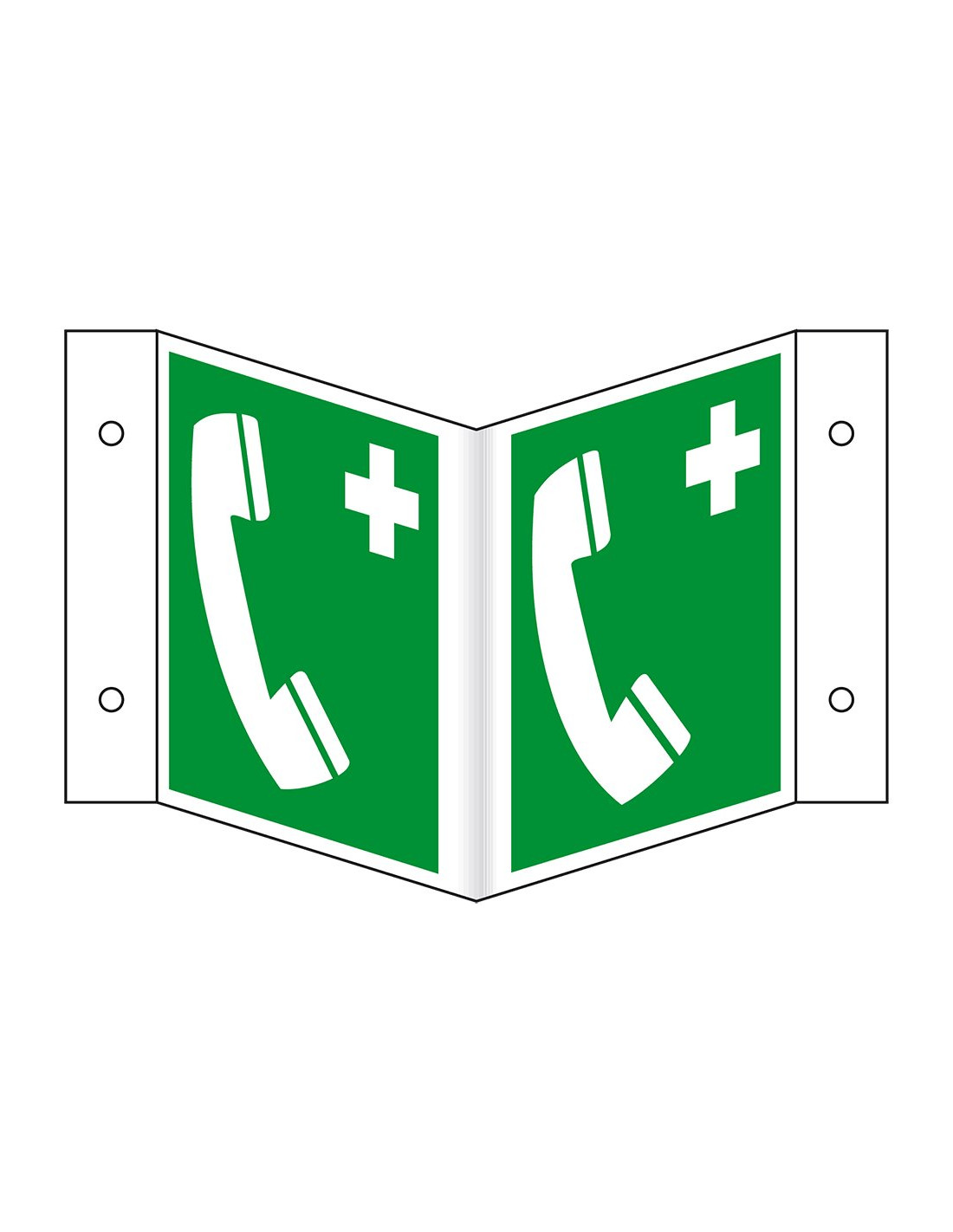 Dit panorama noodtelefoon bord laat zien dat er op deze plek een noodtelefoon beschikbaar is. Op die manier zorgt u ervoor dat mensen deze plek snel kunnen vinden in het geval van een noodsituatie.