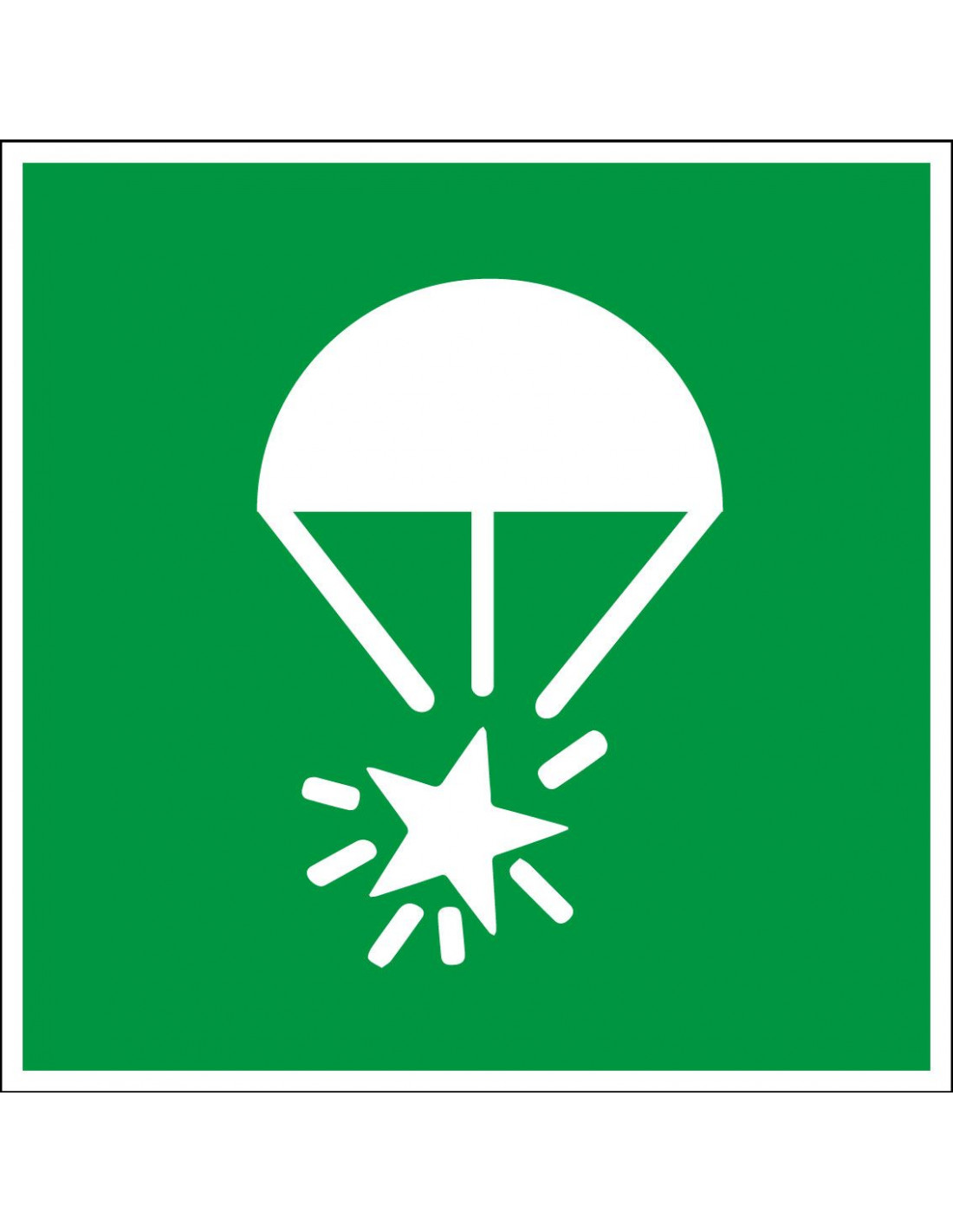 Dit parachute bord laat zien dat er op deze plek een parachute beschikbaar in het geval van nood. Op die manier zorgt u ervoor dat mensen deze plek snel kunnen vinden in het geval van een noodsituatie.