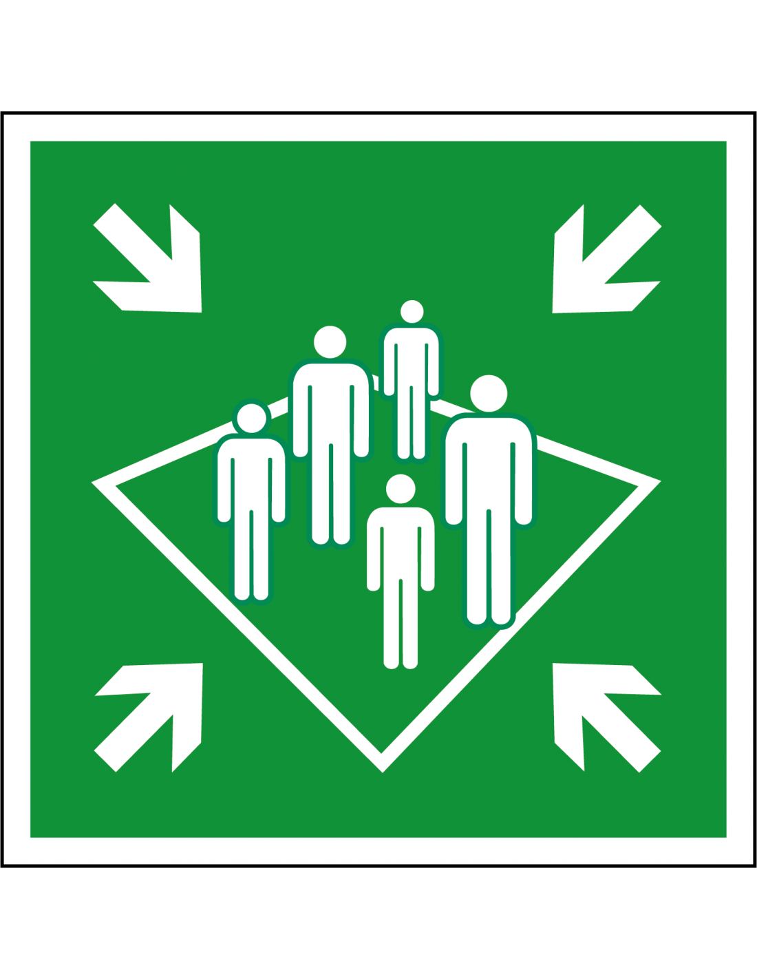 Dit verzamelplaats bord laat zien dat er op deze plek een verzamelplaats aan boord is. Het is belangrijk om duidelijk te maken waar deze locatie zich bevindt.