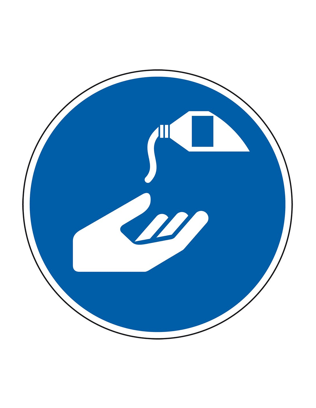 Dit gebodsbord laat zien dat er op deze plek een verplichting geldt voor het desinfecteren van de handen met zeep. Dit is raadzaam om infecties en besmettingen met virussen te voorkomen.
