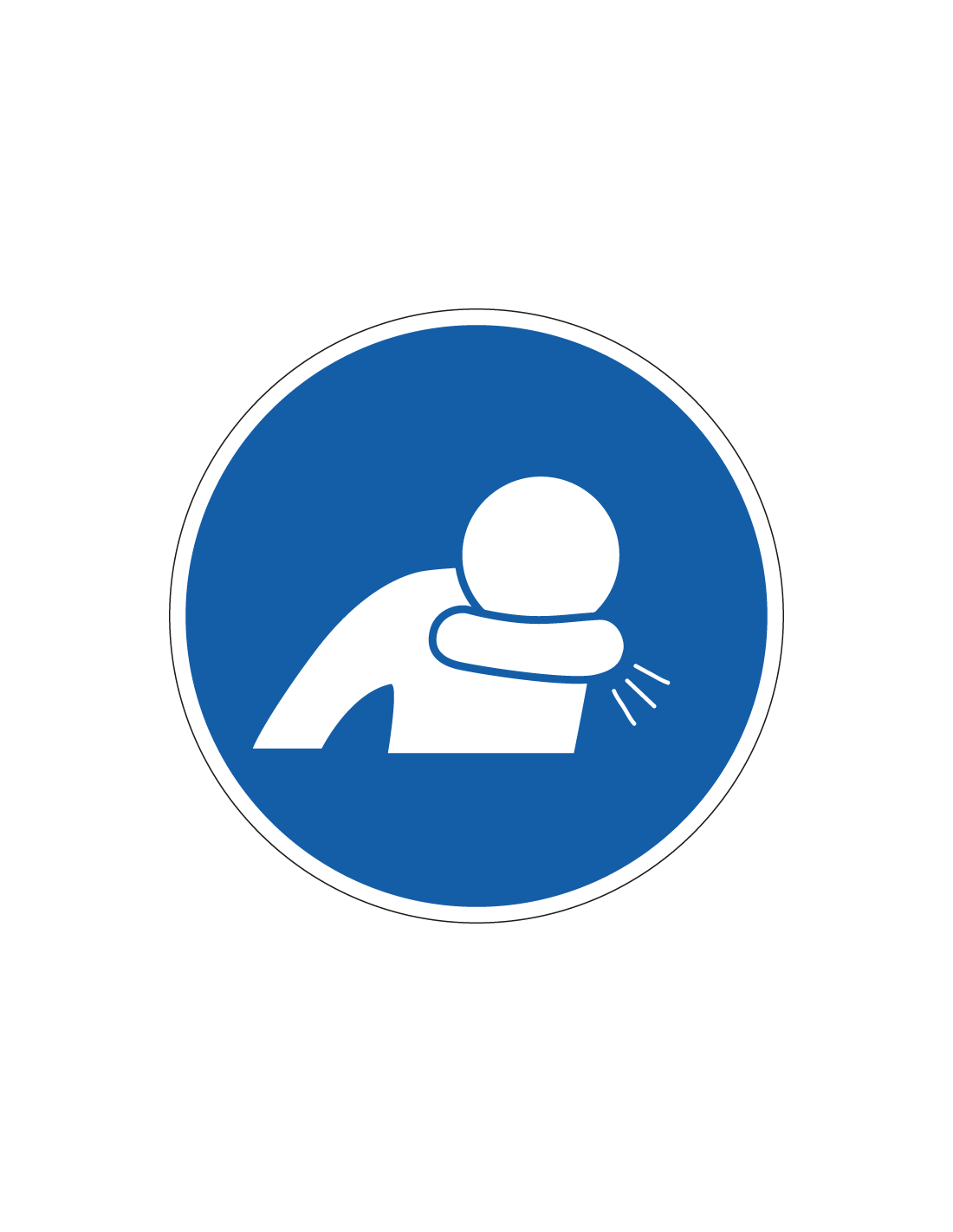 - Rond bord met pictogram in elleboog niezen verplicht gebruiken