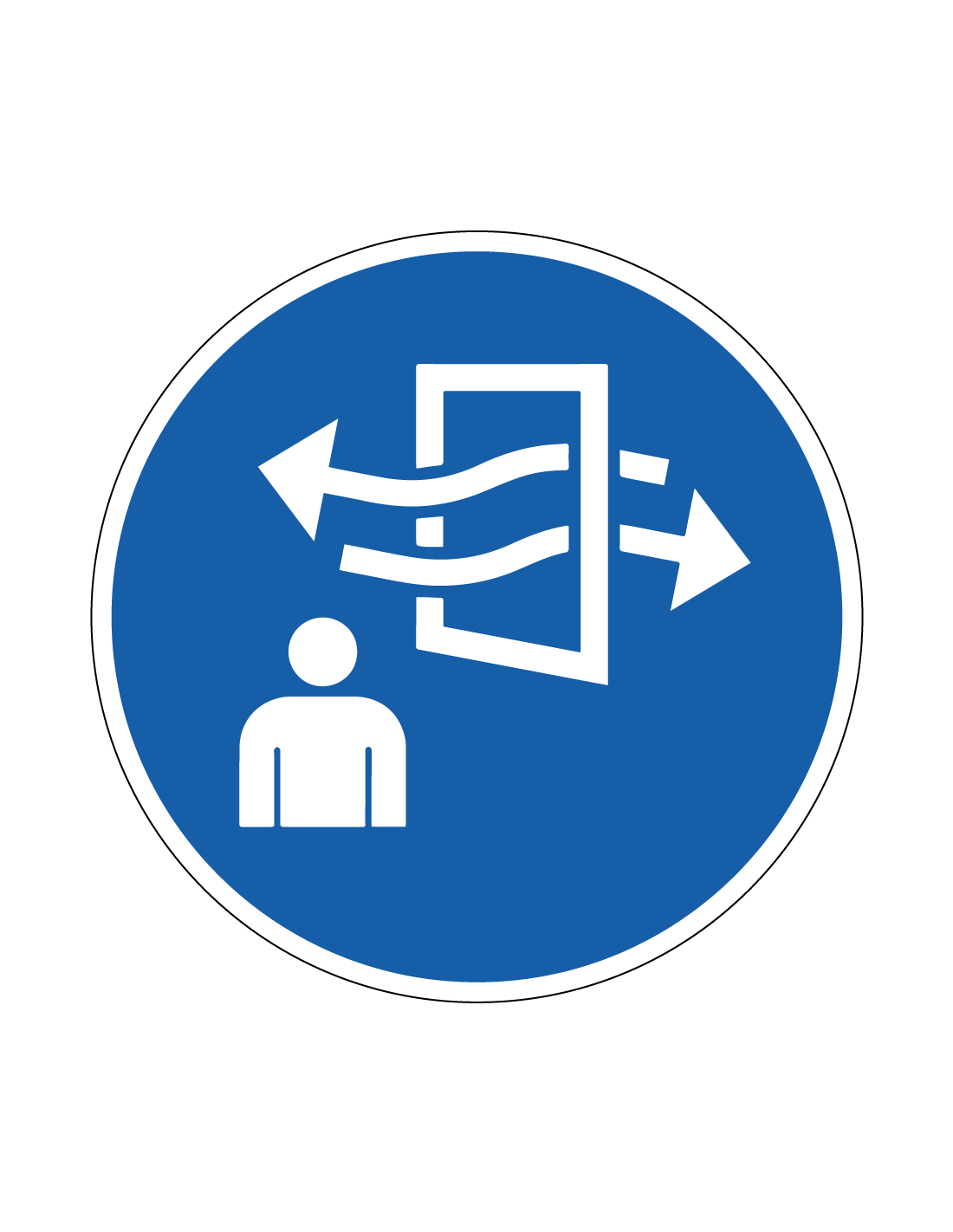 Wanneer je wilt aangeven dat er een gebod geldt voor het ventileren van ruimtes dan is dit bord ideaal. Dit gebodspictogram is gemaakt van kunststof en voldoet aan de laatste veiligheidseisen. Dit zijn ASR A1.3 M056, DIN EN ISO 7010 M056.