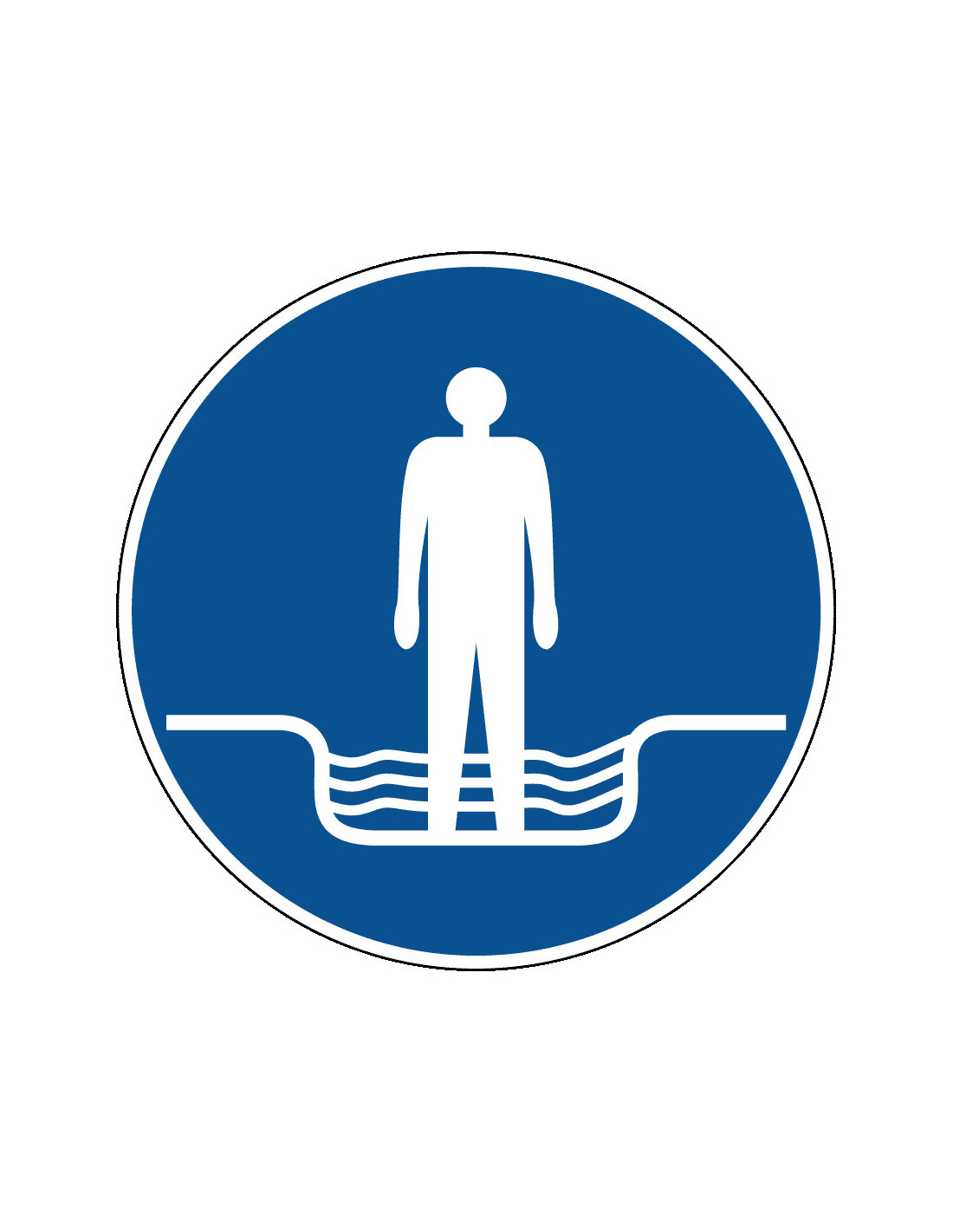 Verder is het voeten bad verplicht symbool gekeurd volgens de laatste veiligheidsnorm. Het bord is gemaakt van kunststof, wat hem geschikt maakt voor binnen- en buitengebruik. Bovendien is het bord temperatuurbestendig van -40 tot +60 °C en resistent tegen oplosmiddel en lichte chemicaliën. Het bord is licht, stabiel en niet makkelijk ontvlambaar.