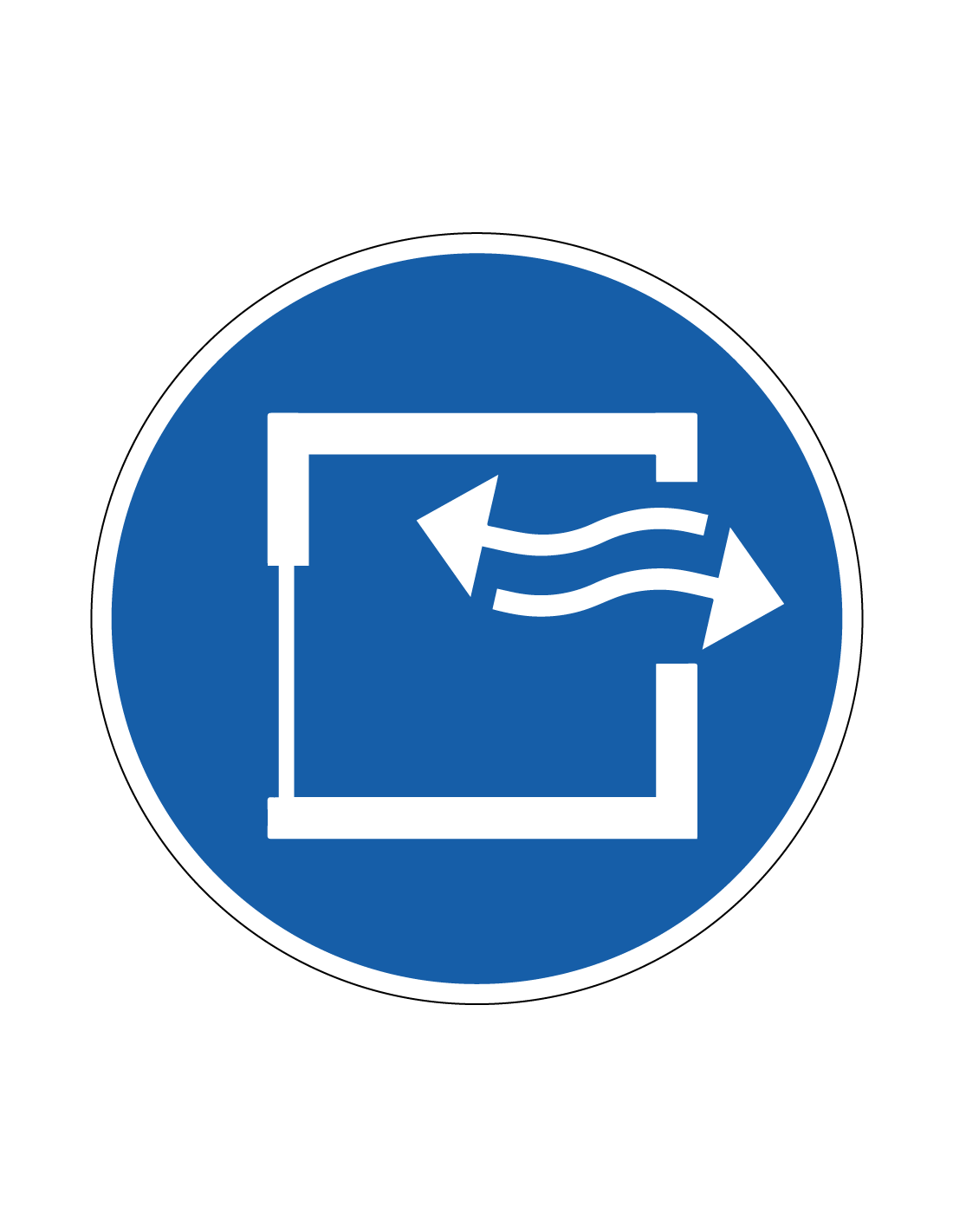 Wanneer je wilt aangeven dat er een gebod geldt voor het ventileren van ruimtes dan is dit bord ideaal. Dit gebodspictogram is gemaakt van kunststof en voldoet aan de laatste veiligheidseisen. Dit zijn ASR A1.3 M057, DIN EN ISO 7010 M057.