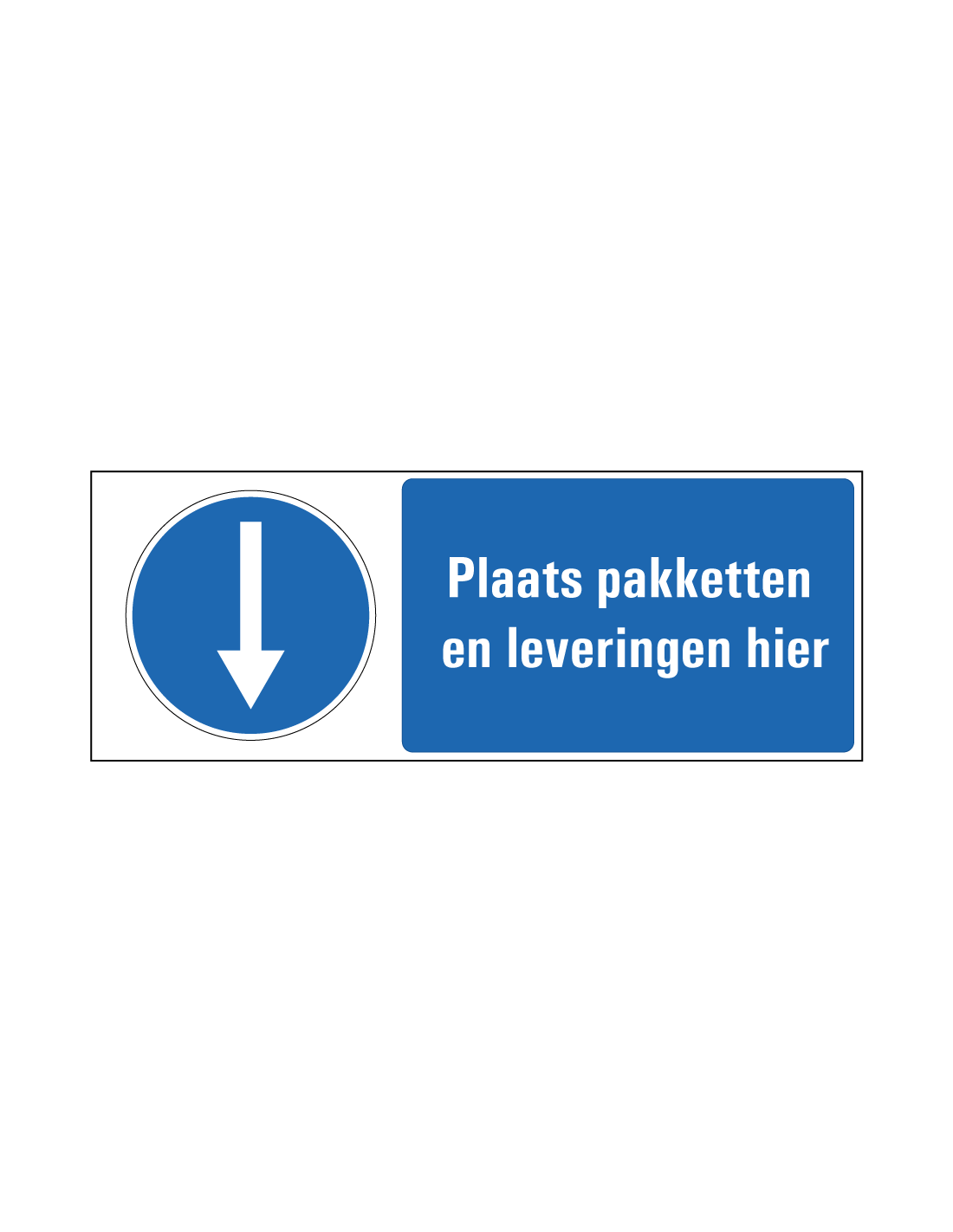 - Rechthoekig bord met symbool pijl en tekst plaats pakketten en leveringen hier