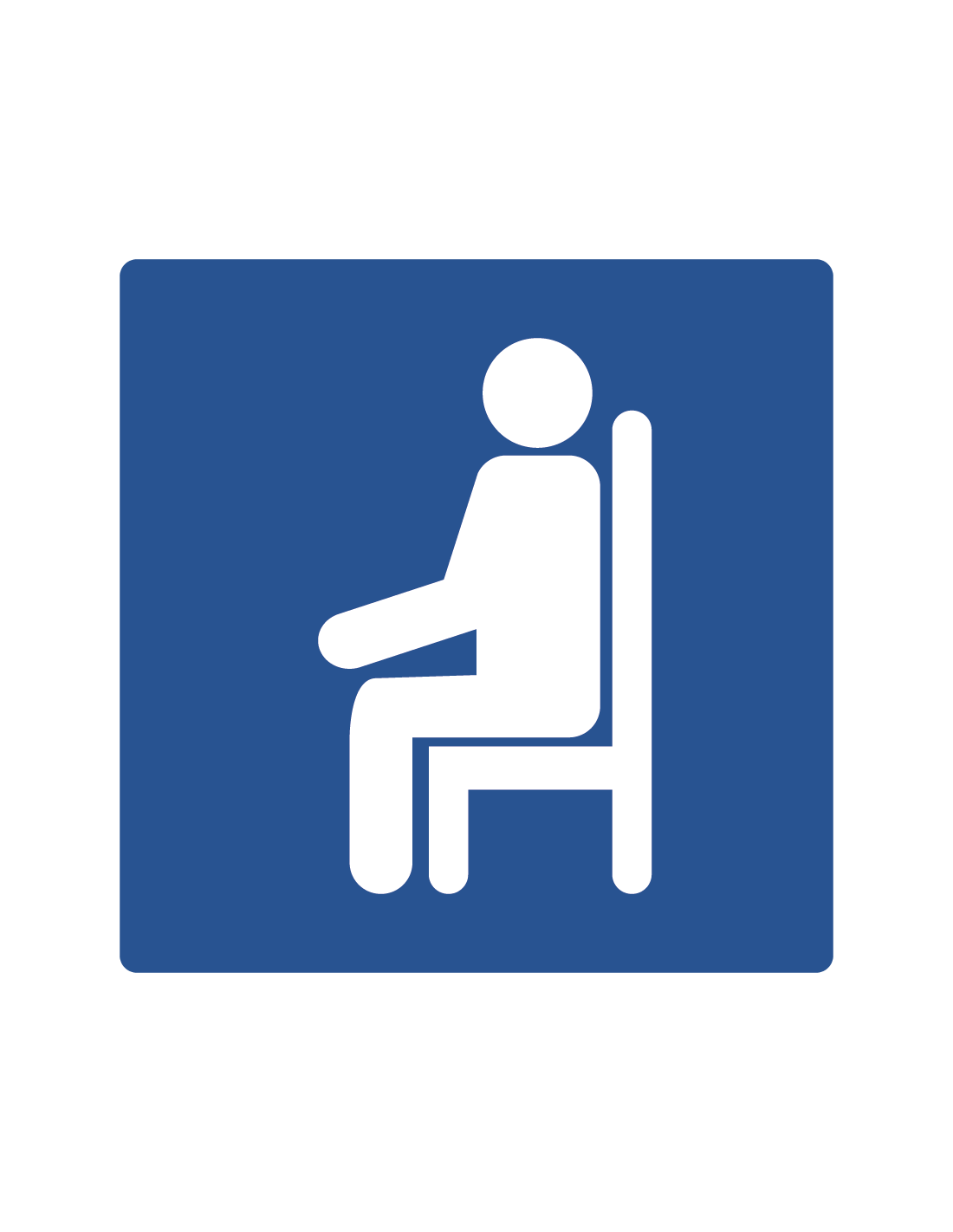 Dit bord laat door middel van het zitplaats symbool zien waar de zitplaats zich bevindt. Zo kan iedereen duidelijk zien waar deze te vinden is.