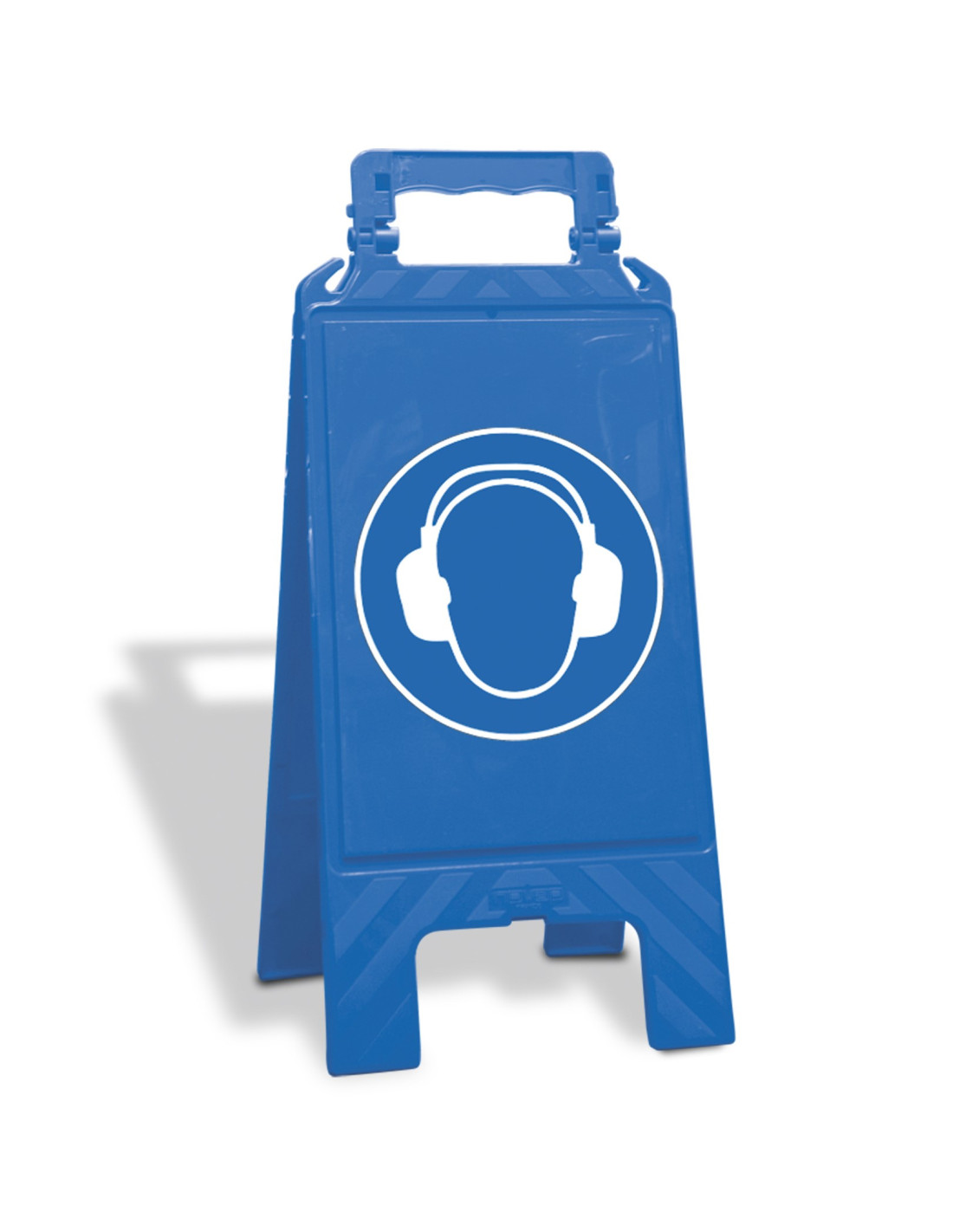 Deze inklapbare signalering met gehoorbescherming verplicht gebodspictogram is bijzonder breed wanneer uitgeklapt. Hierdoor staat het bord bijzonder stevig en waait het niet makkelijk om. De ISO 7010 symbolen zijn in het midden geplaatst en zijn ook groter dan op normale gebodsborden. Ze zijn visueel en snel waarneembaar, zo is het voor iedereen duidelijk wat met het bord bedoeld wordt.