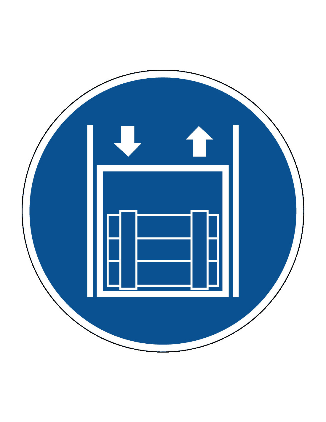Dit goederenlift verplicht gebodsbord laat zien dat er op deze plek een bepaald gebod geldt. Het is handig om dit bord te gebruiken wanneer u wilt aangeven dat het verplicht is om een goederenlift te gebruiken.
