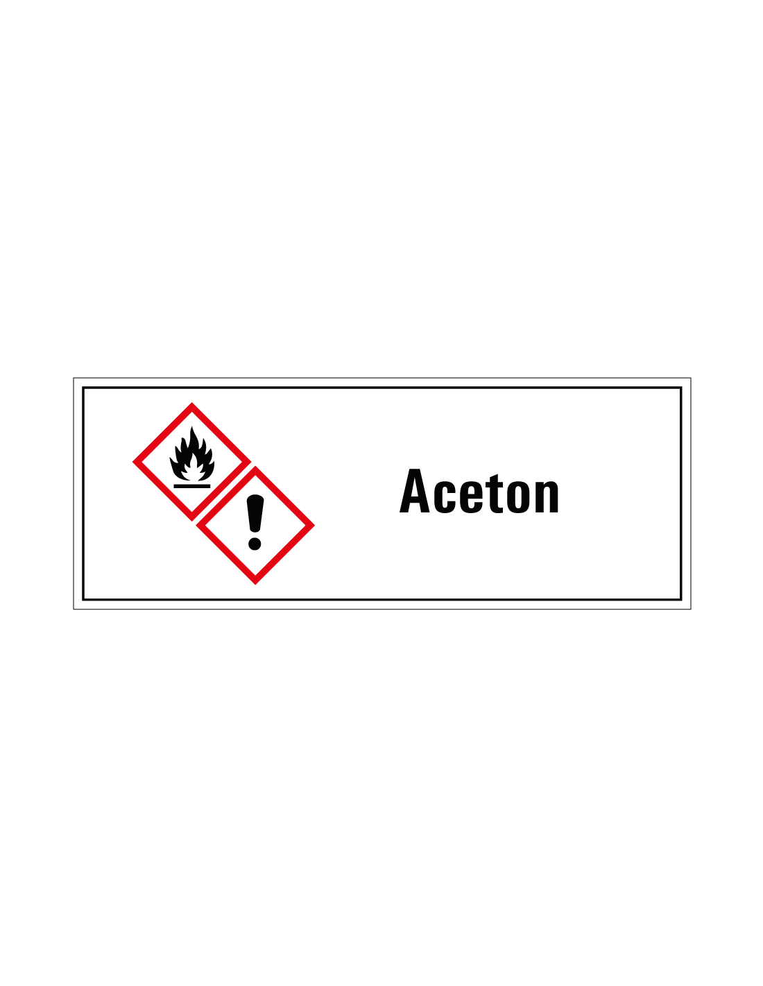 De aceton GHS tekstbord met pictogrammen van GHS02 en GHS07 geeft aan dat met een chemische stof voorzichtig omgegaan moet worden. Er zitten namelijk gevaarlijke chemicaliën in de stof die de gezondheid kunnen schaden.