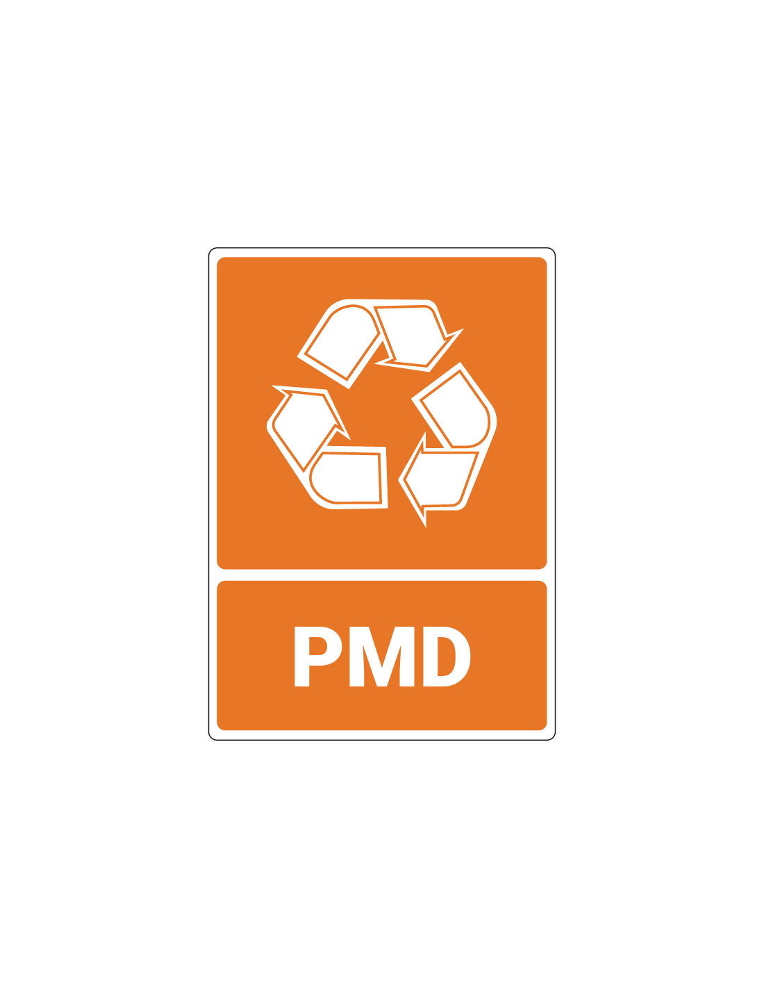Het afvalbord PMD, kunststof moet op de afvalbak voor plastic, metaal en drankkartons geplakt worden. Zo wordt het afval beter gescheiden, wat weer beter is voor het milieu. Het bord is geschikt voor binnen- en beperkt buitengebruik.