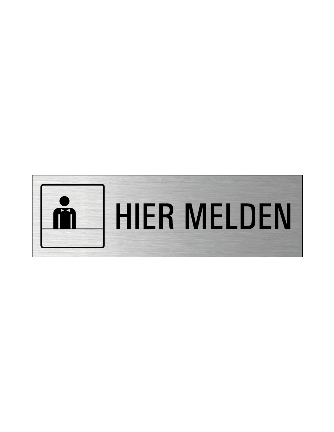 Het Hier melden deurbordje met zelfklevende strip is gemaakt van 3 mm dik geborsteld aluminium materiaal. Dit is een stijlvol materiaal om aan te duiden dat je je hier moet melden.