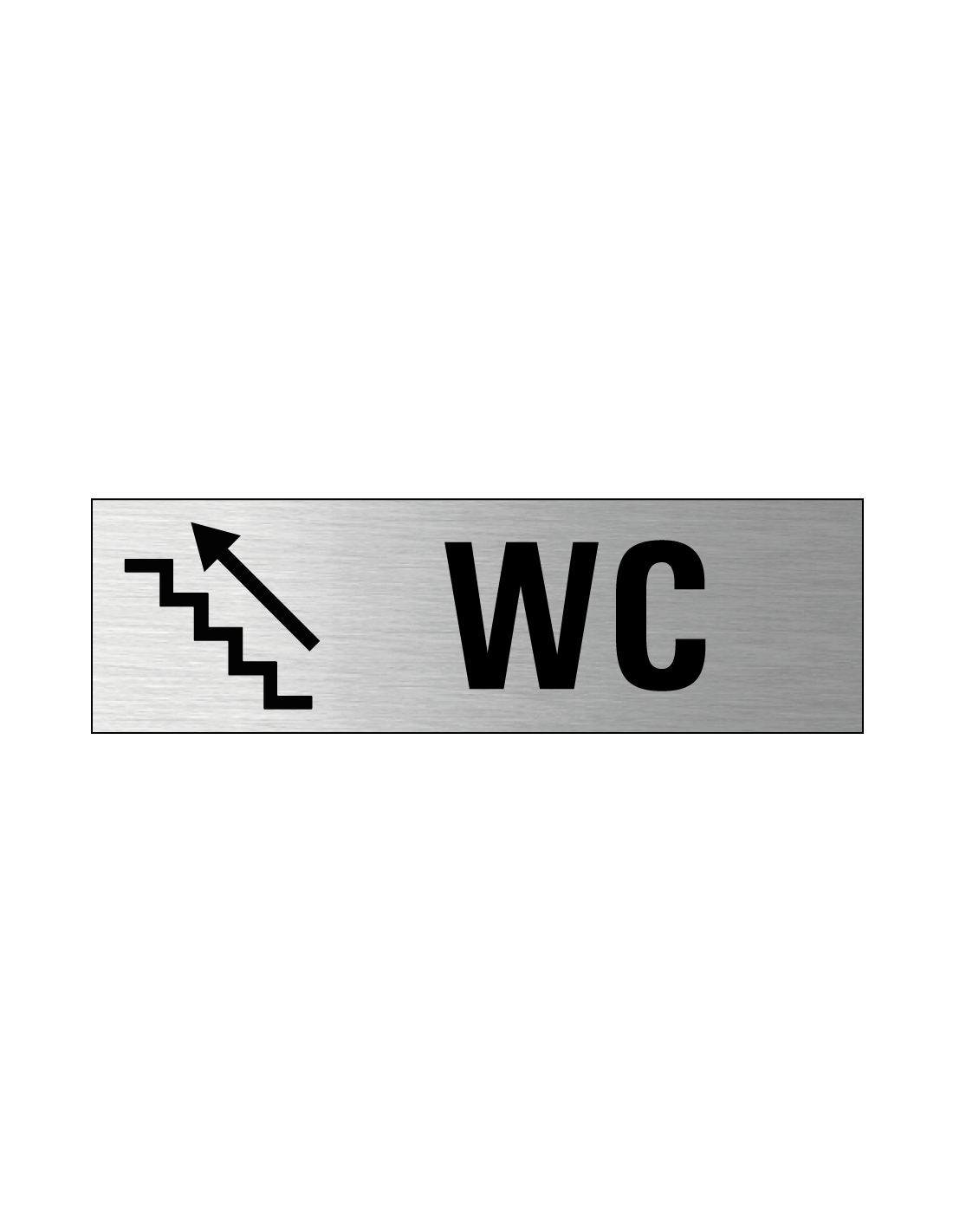 Het wc trap omhoog links deurbordje is gemaakt van 3 mm dik geborsteld aluminium materiaal. Dit is een stijlvol materiaal om aan te duiden dat de wc links naar boven is.