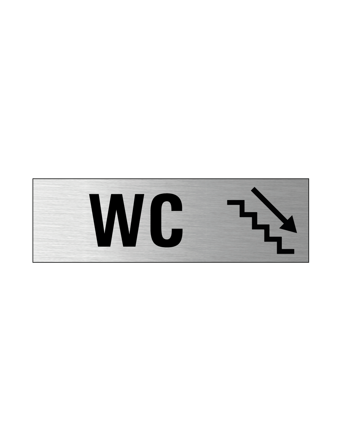 Het wc trap omlaag rechts deurbordje is gemaakt van 3 mm dik geborsteld aluminium materiaal. Dit is een stijlvol materiaal om aan te duiden dat de wc rechts naar beneden is.