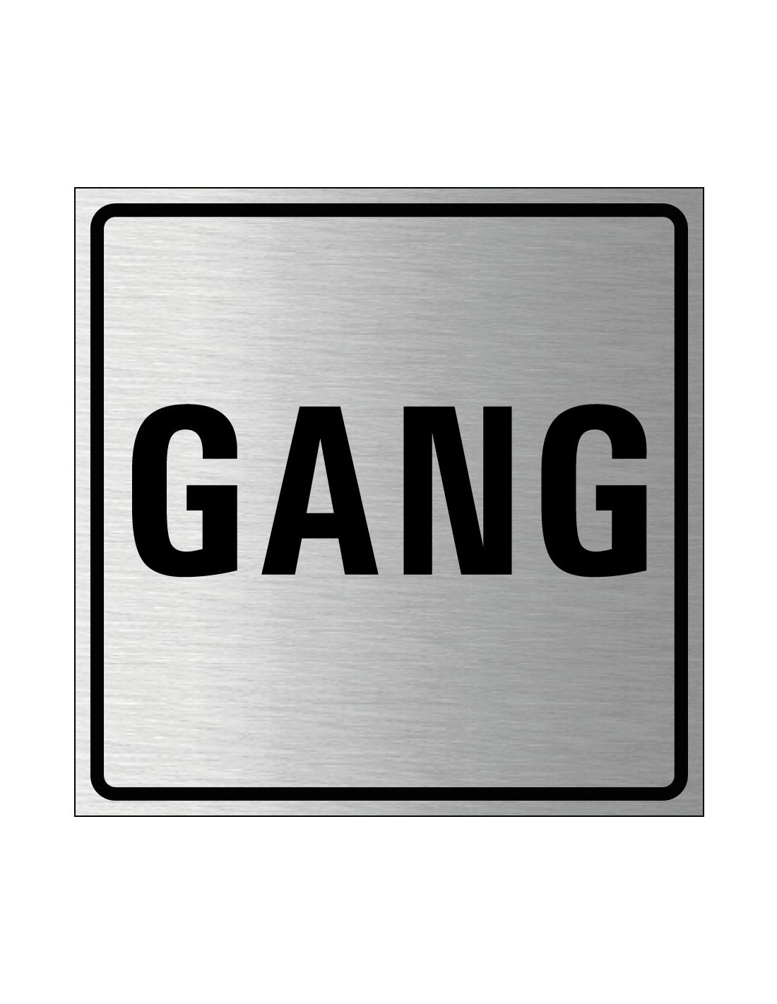 Dit Gang Bordje van geborsteld aluminium is de ideale oplossing om gangen duidelijk aan te geven, zowel binnen als buiten. Het bordje is voorzien van de Nederlandse tekst "gang" in een opvallende zwarte opdruk, waardoor het voor iedereen direct herkenbaar is.