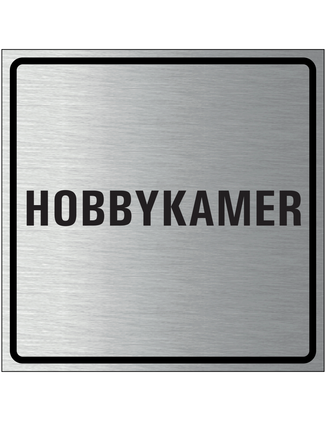 Een geborsteld aluminium hobbykamer bordje dat duidelijk aangeeft dat er zich een hobbykamer bevindt. Dit bordje is ontworpen voor zowel binnen- als buitengebruik en is verkrijgbaar in verschillende afmetingen, passend bij de behoeften van uw ruimte. Het vierkante ontwerp en de geborstelde afwerking met zwarte opdruk zorgen voor een moderne uitstraling die goed past bij elke inrichting.