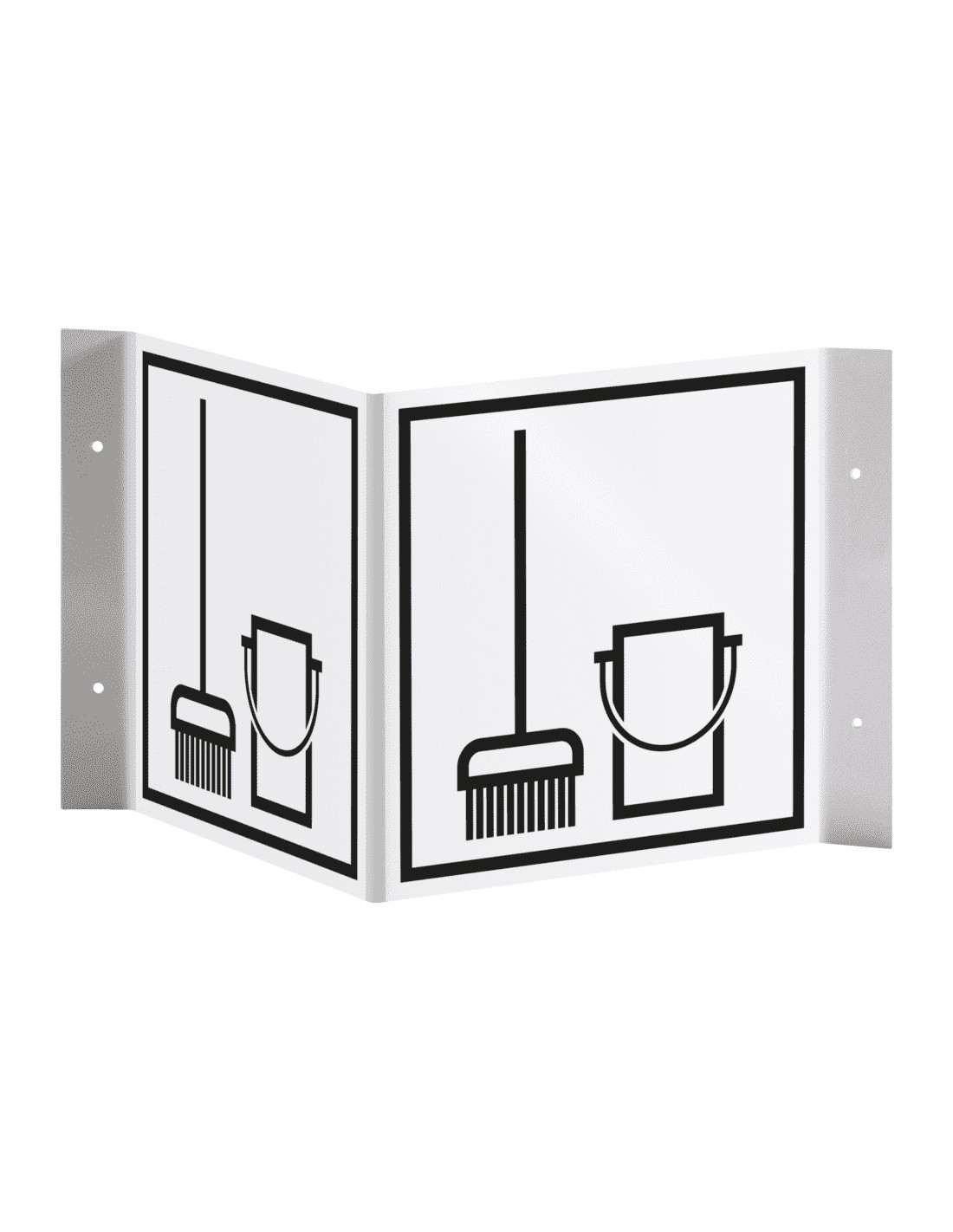 Dit panorama bord met bezemkast pictogram is eenvoudig te monteren door de vier boorgaten met een doorsnede van 5 millimeter. Na bevestiging is het bord vanuit een hoek van 180° te zien. Het bord is gemaakt van kunststof. Dit maakt het bestand tegen vocht en zelfs zwakke zuren. Bovendien is het bord vlam vertragend. Hierdoor is het bord geschikt om binnen en buiten te gebruiken.