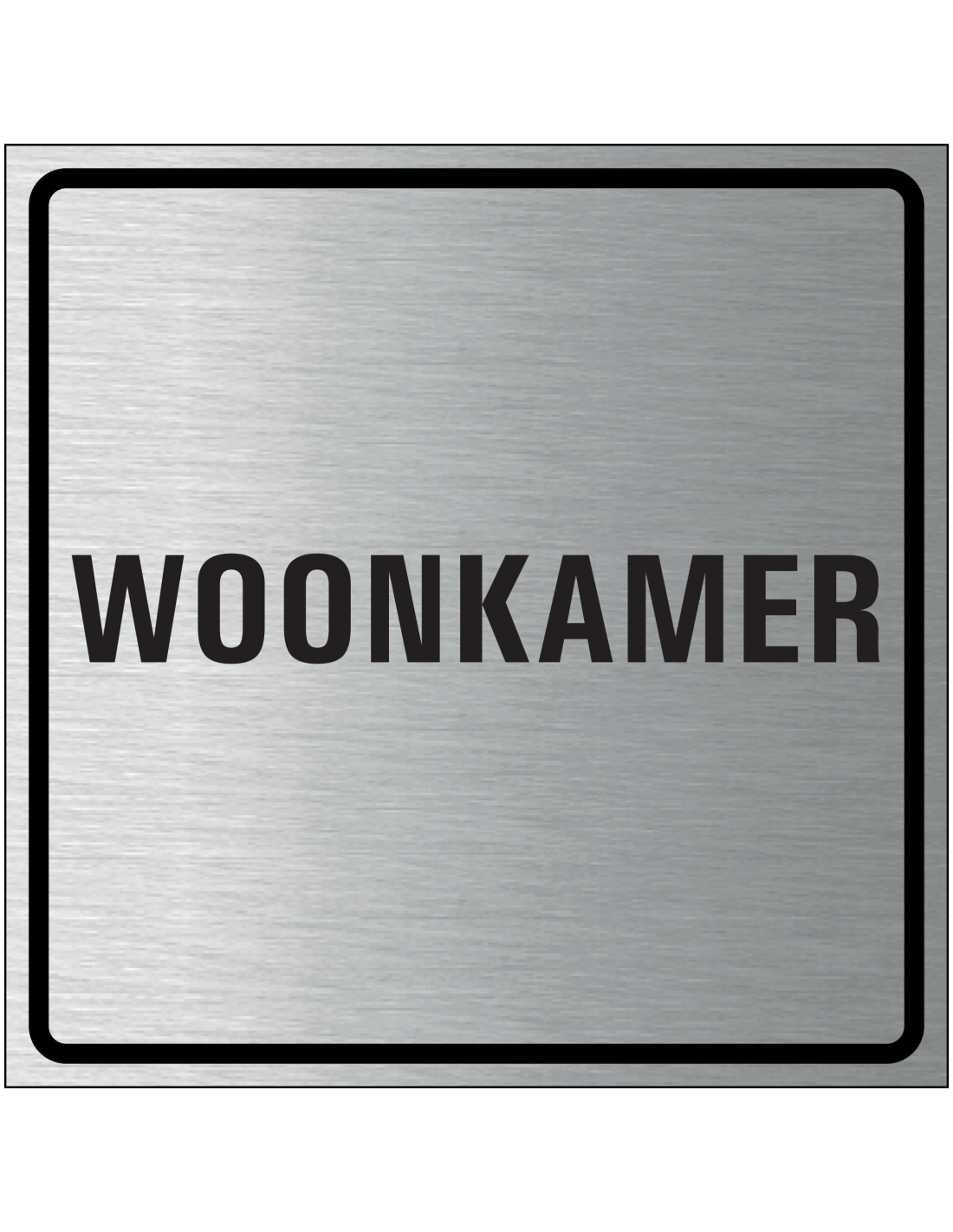 Het bordje is vervaardigd uit hoogwaardig geborsteld aluminium en is voorzien van zwarte opdruk met de Nederlandse tekst "woonkamer". Het vierkante ontwerp zorgt voor een moderne uitstraling die perfect past bij diverse interieurstijlen. Bovendien is het bordje geschikt voor zowel binnen- als buitengebruik, waardoor het zowel in uw huis als bij de entree kan worden geplaatst.