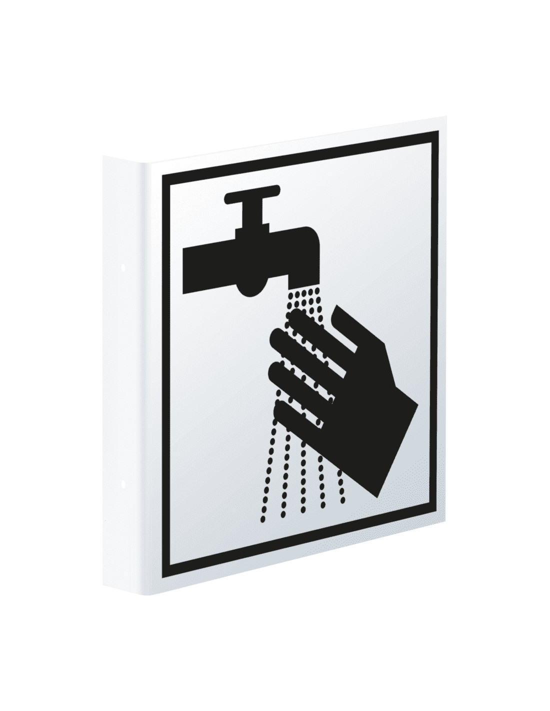Dit haakse bord met handen wassen pictogram is eenvoudig te monteren door de twee boorgaten van 5 millimeter. Het bord is gemaakt van kunststof. Dit maakt het bestand tegen vocht en zelfs zwakke zuren. Bovendien is het bord vlamvertragend. Hierdoor is het bord geschikt om binnen en buiten te gebruiken.