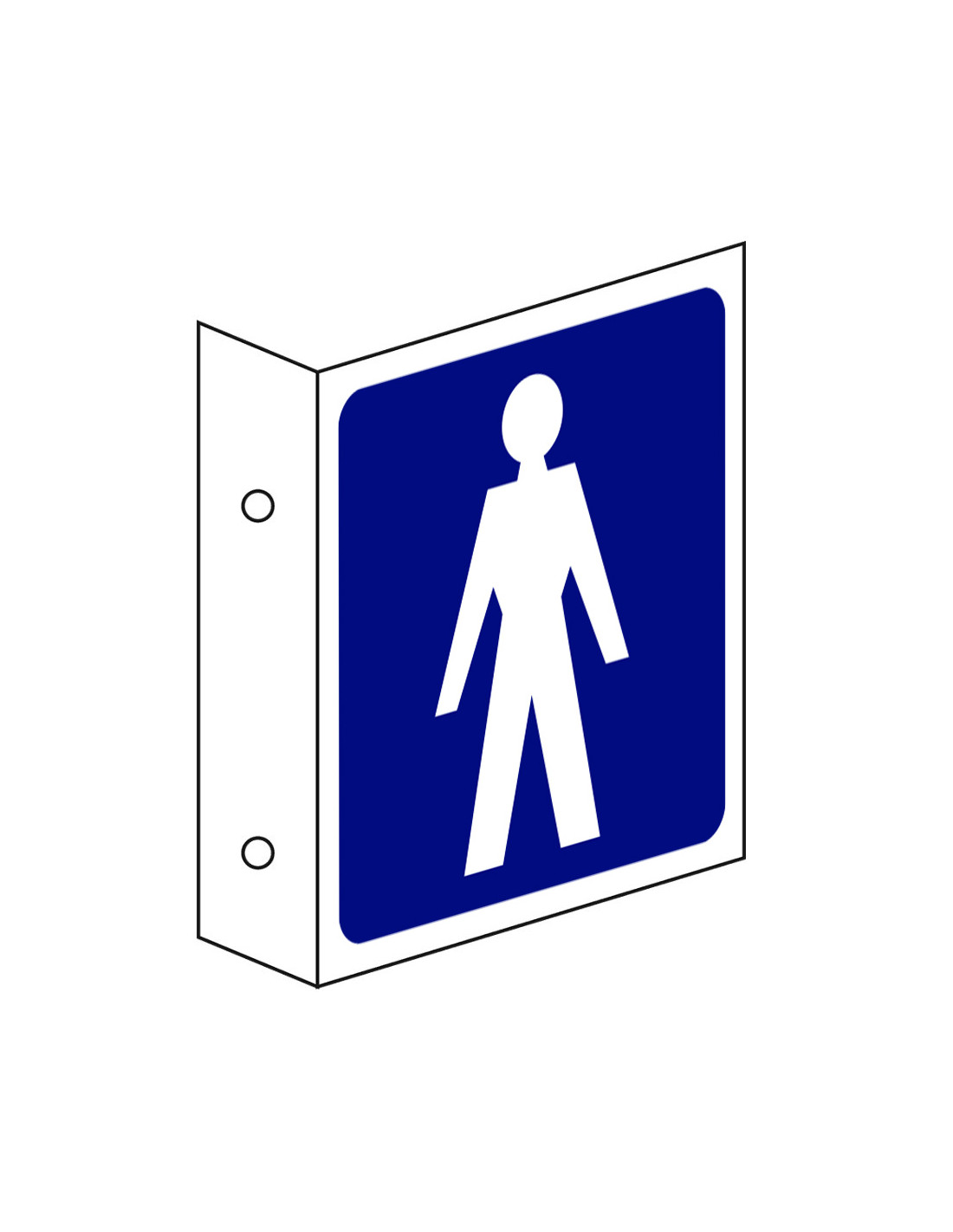 Dit haakse bord om heren toiletten aan te geven is eenvoudig te monteren door de twee boorgaten van 5 millimeter. Het bord is gemaakt van PVC. Dit maakt het bestand tegen vocht en zelfs zwakke zuren. Bovendien is het bord vlam vertragend. Hierdoor is het bord geschikt om binnen en buiten te gebruiken.