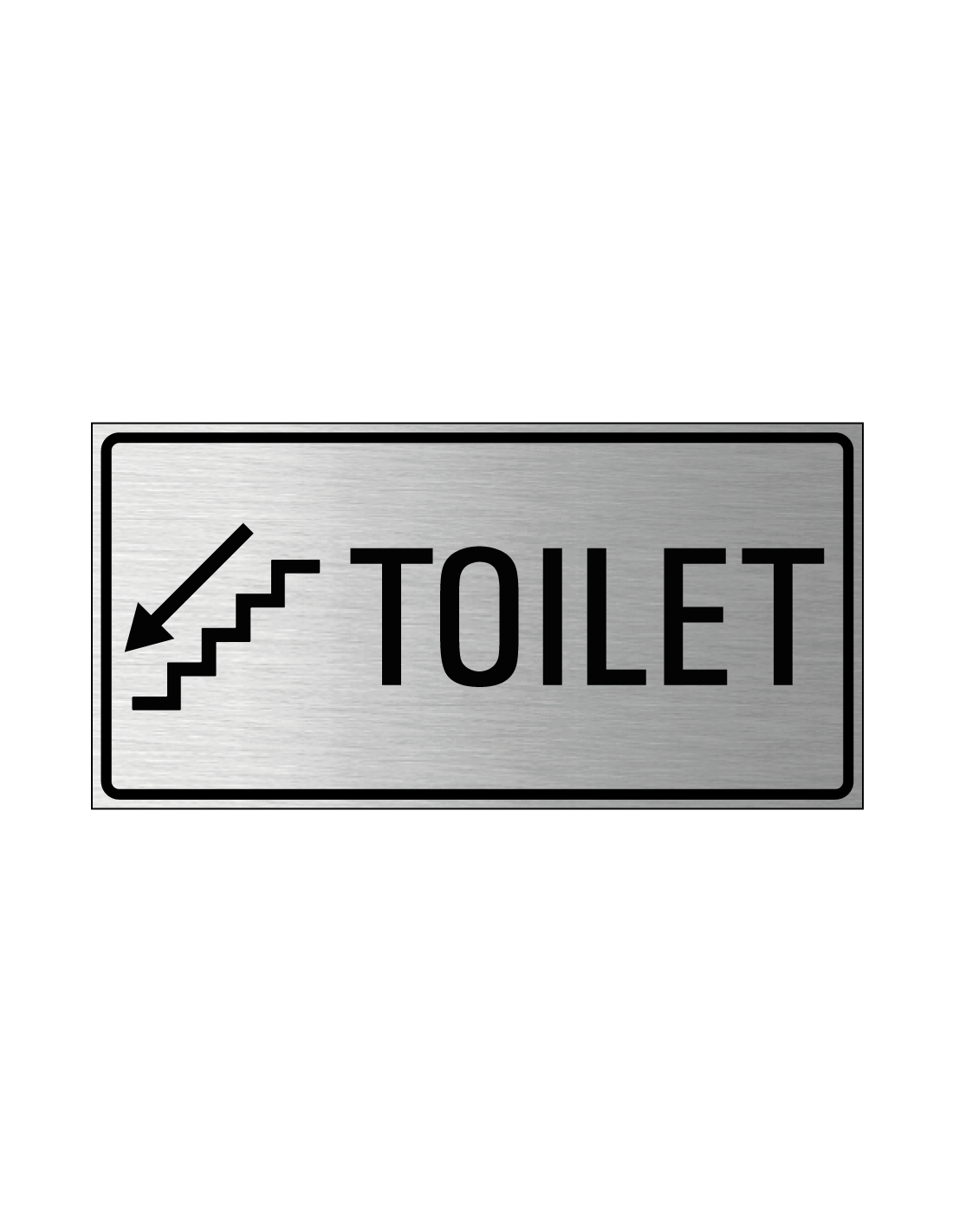 Dit toilet trap omlaag bord links is ideaal om te gebruiken wanneer het toilet moeilijk vindbaar zijn voor bezoekers, klanten of postbezorgers. Het bord is gemaakt van geborsteld aluminium panelen met een kunststof kern. Hierdoor heeft het bord een moderne look en is het uitstekend weersbestendig.