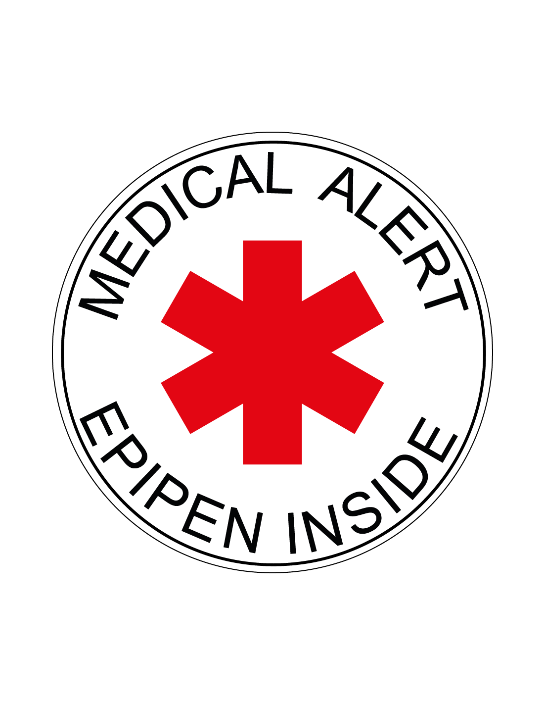 Het epipen bordje kun je gebruiken om aan te geven dat er een adrenaline injectie beschikbaar is, waarmee een patiënt behandeld kan worden. Door dit bord te gebruiken maak je dit op een goede manier duidelijk.