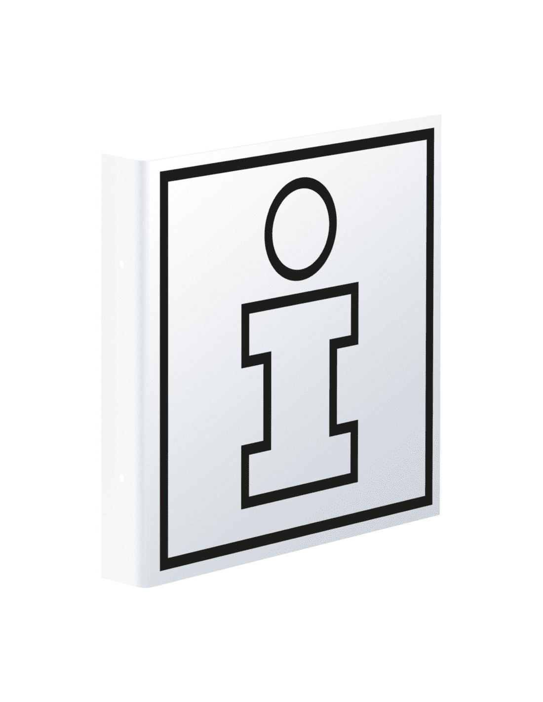 Dit haakse bord om informatiepunten te duiden is eenvoudig te monteren door de twee boorgaten van 5 millimeter. Het bord is gemaakt van kunststof. Dit maakt het bestand tegen vocht en zelfs zwakke zuren. Bovendien is het bord vlam vertragend. Hierdoor is het bord geschikt om binnen en buiten te gebruiken.
