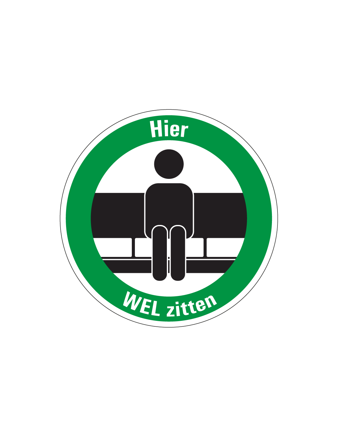 Dit hier kunt u wel zitten tekstbord geeft aan dat personen op deze locatie wel kunnen zitten. Dit is bijvoorbeeld handig wanneer u de afstand tussen mensen wil bewaren in bepaalde ruimte.