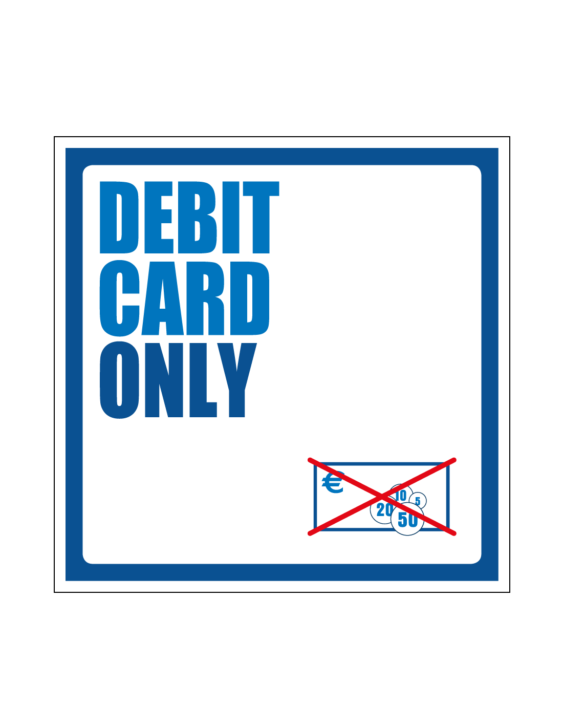 Het debit card only bord is gemaakt van kunststof en kun je op diverse manieren bevestigen, zoals met boorgaten, schroeven, lijm en dubbelzijdige tape. Daarnaast is het bord verkrijgbaar in verschillende afmetingen en geschikt voor binnen- en buitengebruik.