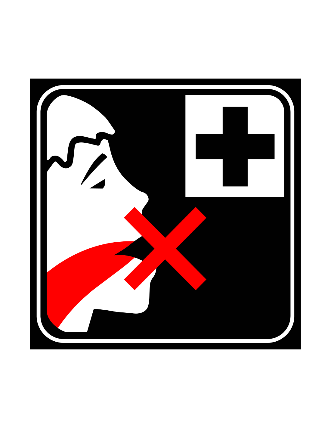 - Vierkant bord met symbool persoon die iets inslikt en rood kruis