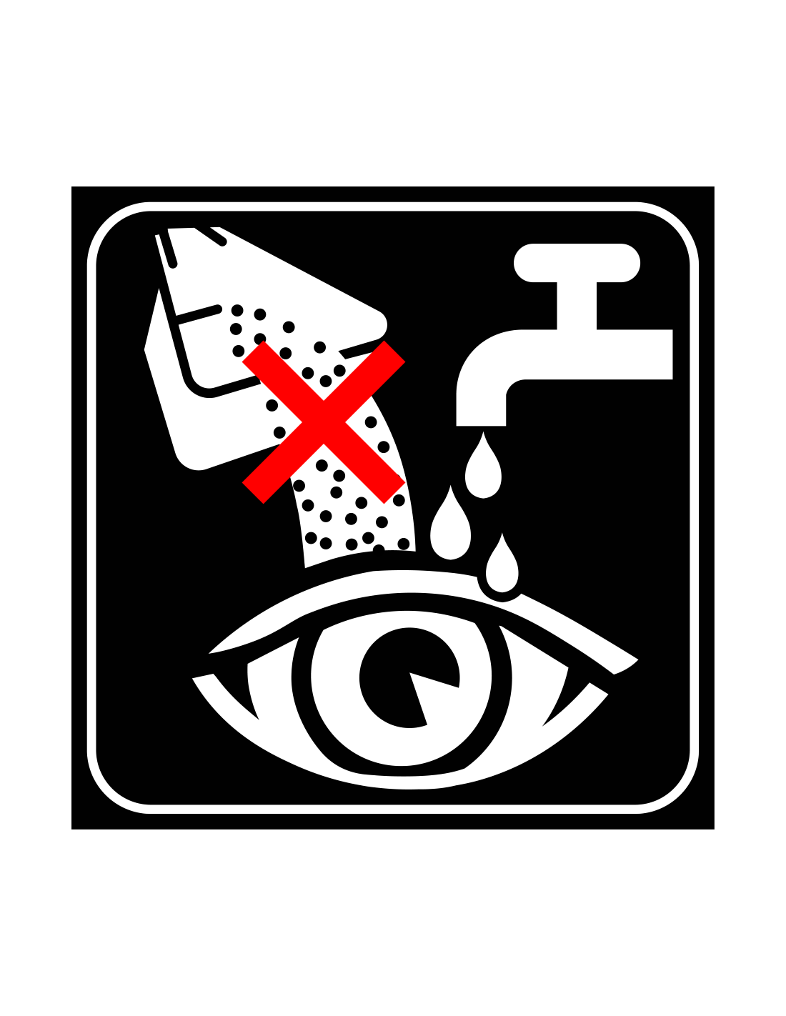- Om aan te geven dat je oogcontact moet vermijden en anders moet uitspoelen met water