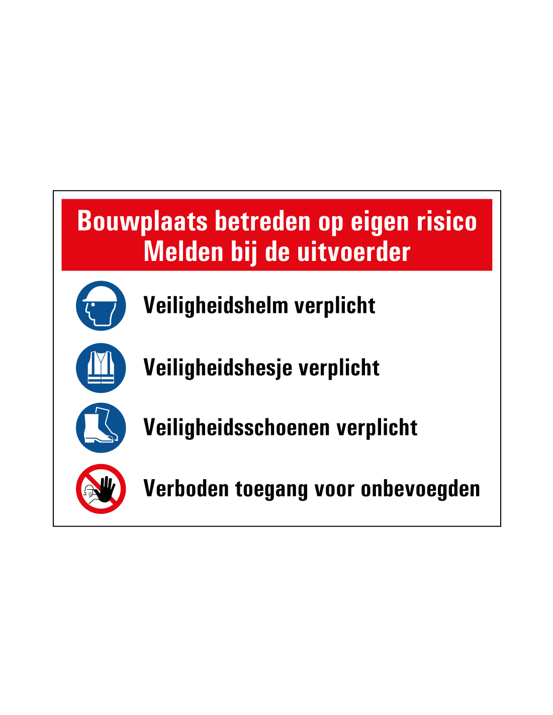 - Geeft aan dat betreden hier op eigen risico is en dat je je moet melden bij de uitvoerder