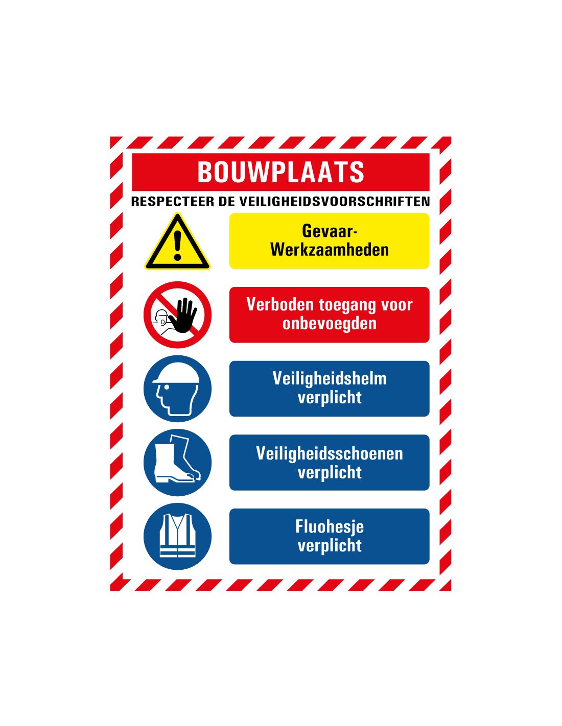 Het Bouwplaats respecteer de veiligheidsvoorschriften bord kun je gebruiken om aan te geven dat er op dit terrein bepaalde veiligheidsvoorschriften gelden. Deze boodschappen vergroten te veiligheid op de bouwplaats.