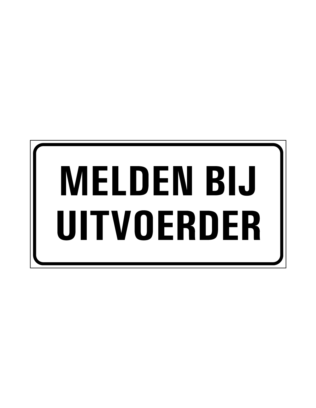 Het Melden bij uitvoerder tekstbord is ideaal voor gebruik op bouwplaatsen en locaties waar melding aan de uitvoerder van belang is. De duidelijke tekst en opvallende kleuren maken de boodschap snel en eenvoudig te begrijpen. Zowel binnen als buiten te gebruiken voor veelzijdige toepassingen.