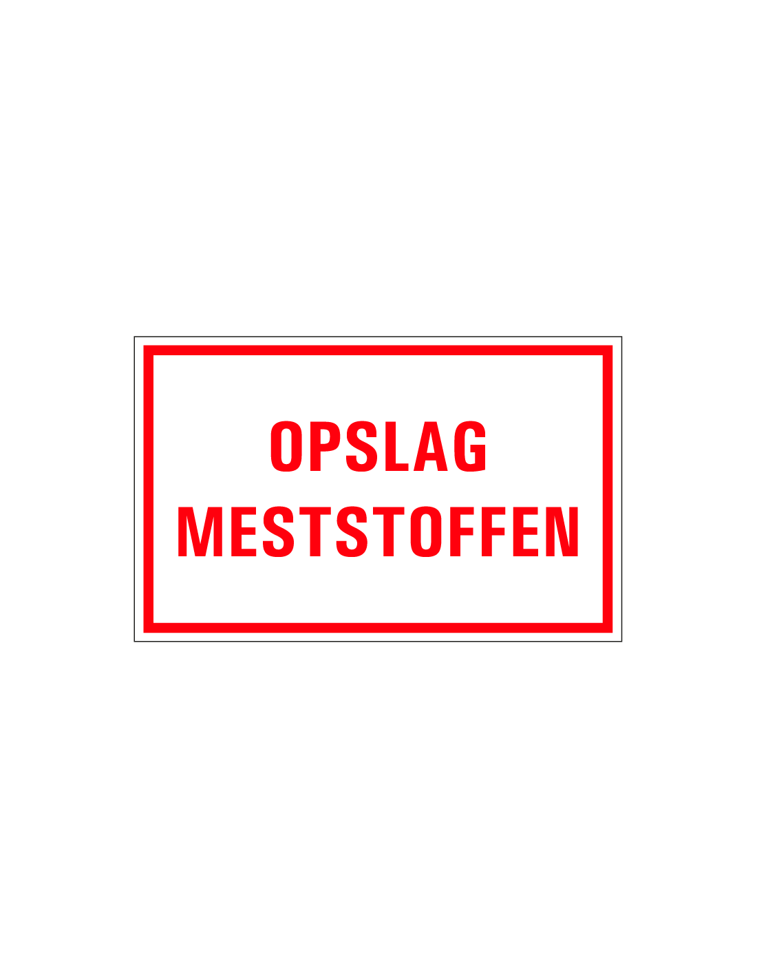 Het bord met tekst nooduitgang meststoffen geeft aan dat op de desbetreffende locatie een opslag van meststoffen aanwezig is. Via dit bord wordt men geattendeerd op de eventuele risico's hier van.