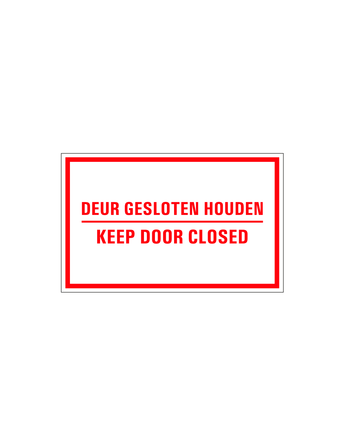 Het tweetalige bord met tekst deur gesloten houden wordt geleverd met twee talen, het Nederlands en het Engels. De tekst maakt duidelijk dat men ten alle tijden de desbetreffende deur gesloten dient te houden.